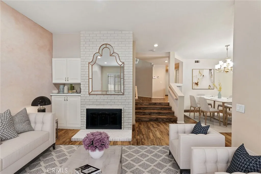 Gated townhouse located in the heart of Woodland Hills. Wood flooring throughout the house, this multilevel unit is designed for the comfort and practicality. The living room boasts large windows with plantation shutters that encourages natural light. The dinning room is adjacent with direct access to the parisian-inspired kitchen. The kitchen is designed with a black and white palette color theme, this kitchen is functional for all of your cooking needs. The stainless steel appliances with plenty of cabinetry for storage give all you would want for a glamorous kitchen. As you walk upstairs you enter the master bedroom and oversized master bath with walk-in closet. The upstairs is complete with one additional bedroom, a bonus room, plus a bathroom. This location has it all being only miles away from the best shopping, dining, and attractions Woodland Hills has to offer.