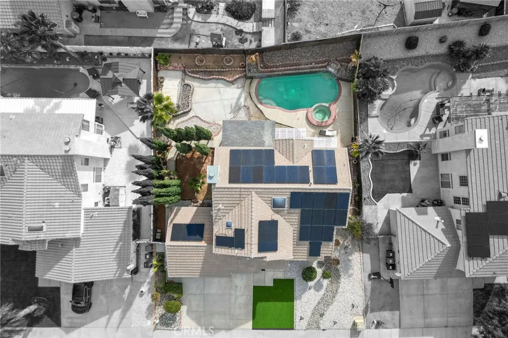 Welcome to your dream home in the highly sought-after Eagle Ranch community! This stunning two-story residence offers 4 spacious bedrooms, 3 bathrooms, and modern upgrades designed for comfort, style, and energy efficiency. Step inside to find a bright and open floor plan featuring a beautifully updated kitchen with newly upgraded countertops, a convenient pantry, and ample cabinet spaceperfect for both everyday living and entertaining. The master suite is a true retreat, complete with a walk-in closet, jetted soaking tub, and plenty of natural light. Three additional bedrooms provide plenty of space for family, guests, or a home office. Enjoy the outdoors in your spacious backyard oasis, featuring a sparkling pool with waterfall and spa, ideal for relaxing or hosting gatherings. The front yard has been recently updated, offering excellent curb appeal from the moment you arrive. Additional highlights include a 3-car garage, solar panels to help reduce electricity costs, and a prime location close to schools, parks, shopping, and major commuter routes. Dont miss this opportunity to own a beautifully maintained home in one of Victorvilles most desirable neighborhoods.