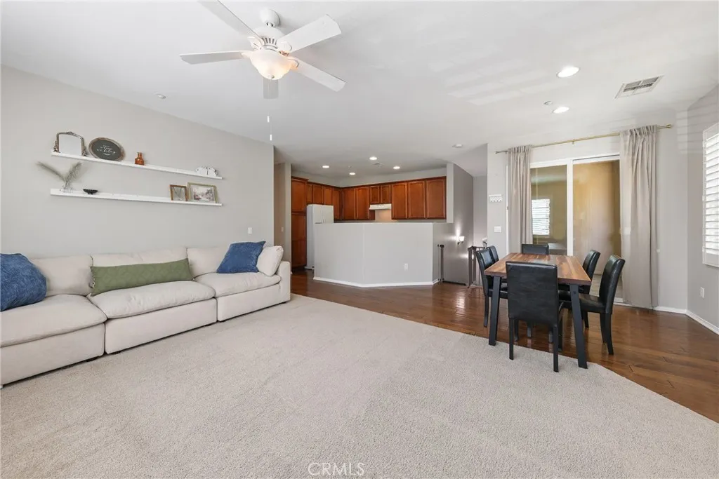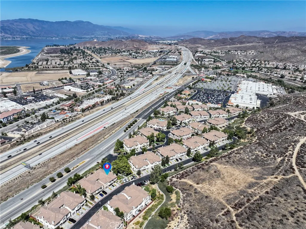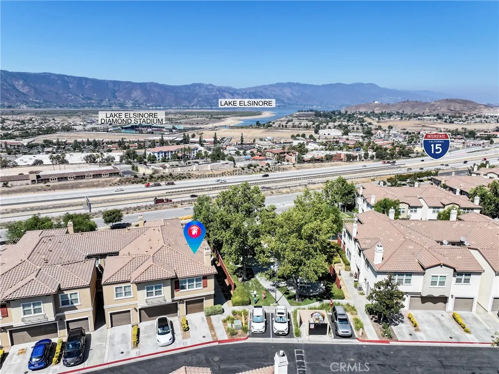 Turn-key Lake Elsinore condo features 2 bedrooms and 2 bathrooms, an open floor plan with abundant natural light that highlights stunning views. The sizeable living area is perfect for entertaining and family time, while the separate dining area opens to a generous covered patio overlooking the community park and Lake Elsinore. Catch mesmerizing sunsets each evening. The kitchen offers extensive counter space and ample cabinet storage. Retreat to a large primary bedroom with an ensuite bath, dual sink vanity, and a spacious walk-in closet. This unit includes a one-car driveway and a direct-access garage with overhead storage racks. Prime location steps from the community park and near convenient parking options. Short stroll to additional street parking off Sunset. Easy access to I-15, Lake Elsinore Storm Stadium, shopping, dining, and entertainment A quick 20-minute drive to Temecula and its renowned wine country. Welcome Home!