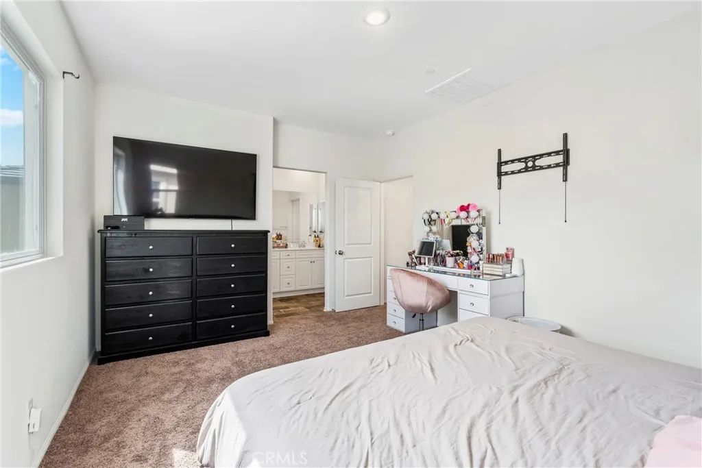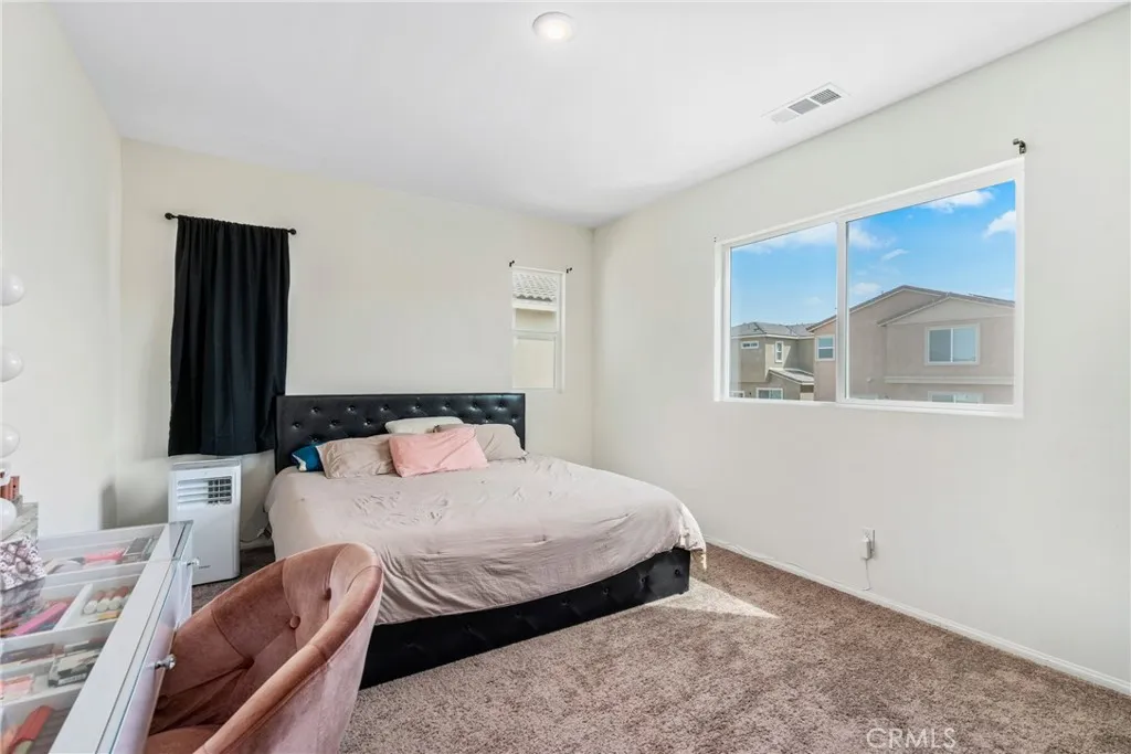 Welcome to a beautifully designed modern home located in a thriving Victorville neighborhood. Built in 2023, this 3-bedroom, 2.5-bathroom residence offers 1,747 square feet of comfortable, low-maintenance living. Step inside to a spacious, light-filled layout featuring a large living room perfect for relaxing or entertaining. The home is flooded with natural lighting, creating a warm and inviting atmosphere throughout. The cozy kitchen comes fully equipped with all appliances includedready for you to move in and enjoy from day one. Upstairs, youll find three generously sized bedrooms, including a well-appointed primary suite with an en-suite bathroom. Outside, the backyard provides a blank canvas to design your perfect outdoor oasiswhether it's a garden, patio, or entertainment area. Additional highlights include central air conditioning, an attached garage, energy-efficient solar panels, and the added benefit of no HOA fees. This residence is ideal for those seeking a recently built, turn-key home in one of Victorvilles growing communities. Don't miss the opportunity to make this modern gem your own!