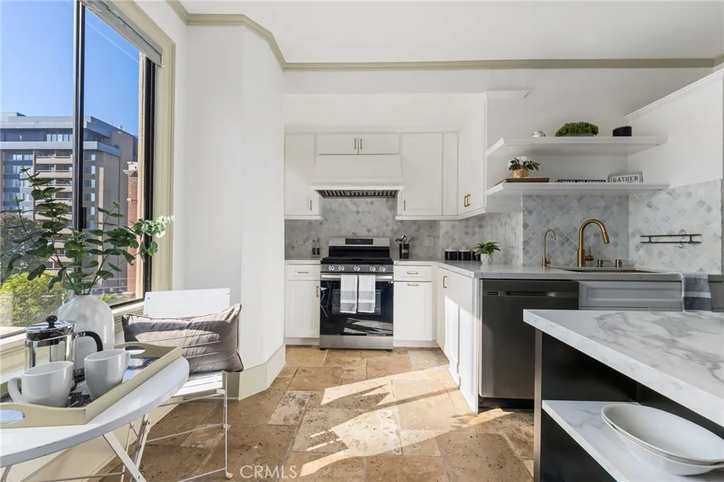 Discover a truly exceptional and unique residence in the iconic Willmore Building - a stunning, oversized unit created by merging two homes into one expansive and thoughtfully designed space. This remarkable property features an open floorplan wrapped in elegant stone floors, centered around a recently renovated kitchen with quartz countertops, a striking designer backsplash, an oversized eat-in island, and a charming brunch nook that flows effortlessly into the bright and airy living room. Large windows frame neighborhood views and fill the space with natural light. The two bedrooms sit on opposite wings for added privacy, with the primary suite tucked behind a hidden bookcase entry and offering its own full bathroom and large closet. The second bedroom, cozy yet beautifully appointed, includes custom built-ins, a window bench overlooking the city, and direct access to the in-unit laundry and a fully remodeled bathroom featuring a glass-enclosed shower, mosaic tile details, and abundant sunlight. The historic building features a lavish entry, a restaurant downstairs that offers owner discounts, a beautiful solarium, 360 rooftop terrace and dues cover all utilities (except cable/internet). All of this is just moments from Downtown Long Beach, The Pike, renowned dining, the beach bike path, the Queen Mary, and the best of coastal urban living.