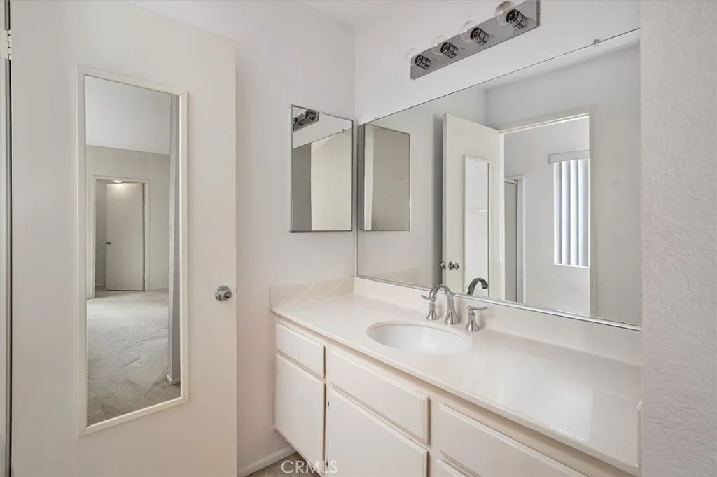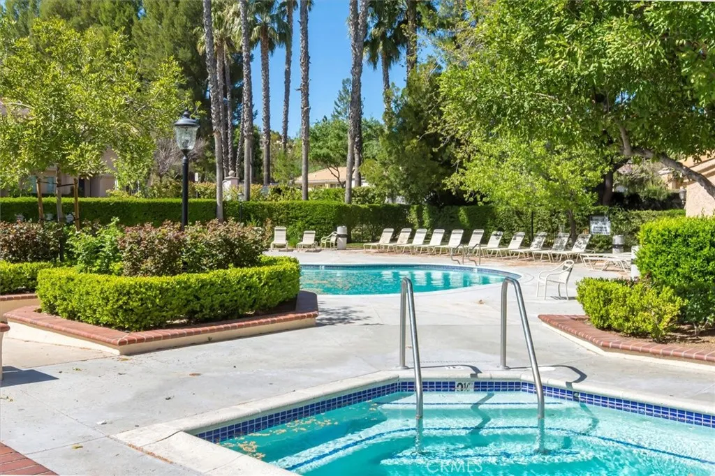 Darling townhome in Stevenson Ranch. 2 Bedrooms upstairs, each with their own bathroom. Fresh interior paint just finished 12/8/25. New carpet just installed in both bedrooms, 12/10/25. Downstairs features a fireplace, good sized kitchen, powder room, and beautiful laminate flooring. Step outside through the slider to a lovely patio where you can enjoy the outdoors. Good location across from guest parking. Washer/Dryer and refrigerator are included. HOA amenities include pool and spa, and park areas.