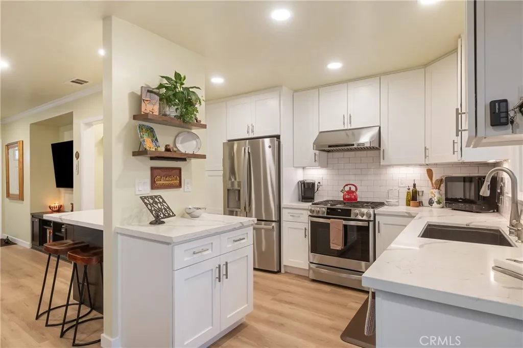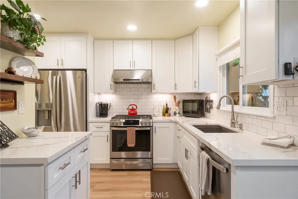 OWNED SOLAR! Updates Galore! Step into your own private Glendora retreat where no detail has been overlooked. This completely reimagined 2-bedroom, 2-bath home blends modern style, comfort, and efficiency throughout. The interior features a stunning remodeled kitchen with premium finishes, upscale tiled bathrooms, upgraded electrical and plumbing, new HVAC, dual-pane windows, and OWNED SOLAR for energy savings. From the kitchen, take in the view of a resort-inspired backyard with a gorgeous pool & spa, fire pit, and night-lit landscaping that transforms the space after dark. Surrounded by tall vinyl fencing and an auto driveway gate, the property offers true privacy along with a versatile she shed perfect for an office, studio, or game room complete with ac & heat. Every inch of this home has been thoughtfully renewed, offering the feel of a private getaway while just minutes from downtown Glendora, shopping, dining, and freeway access.