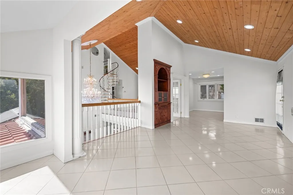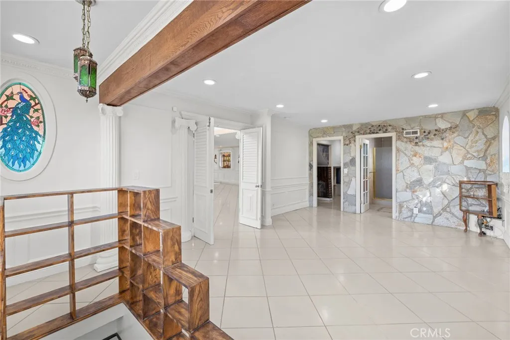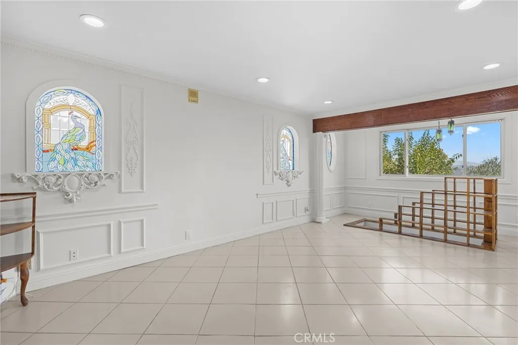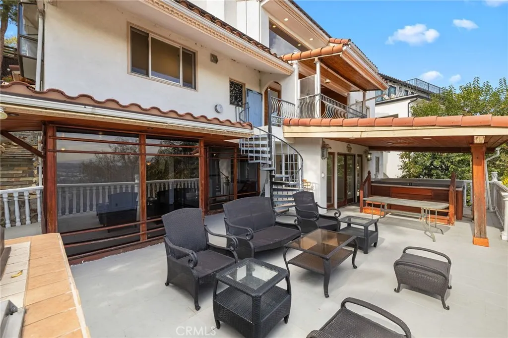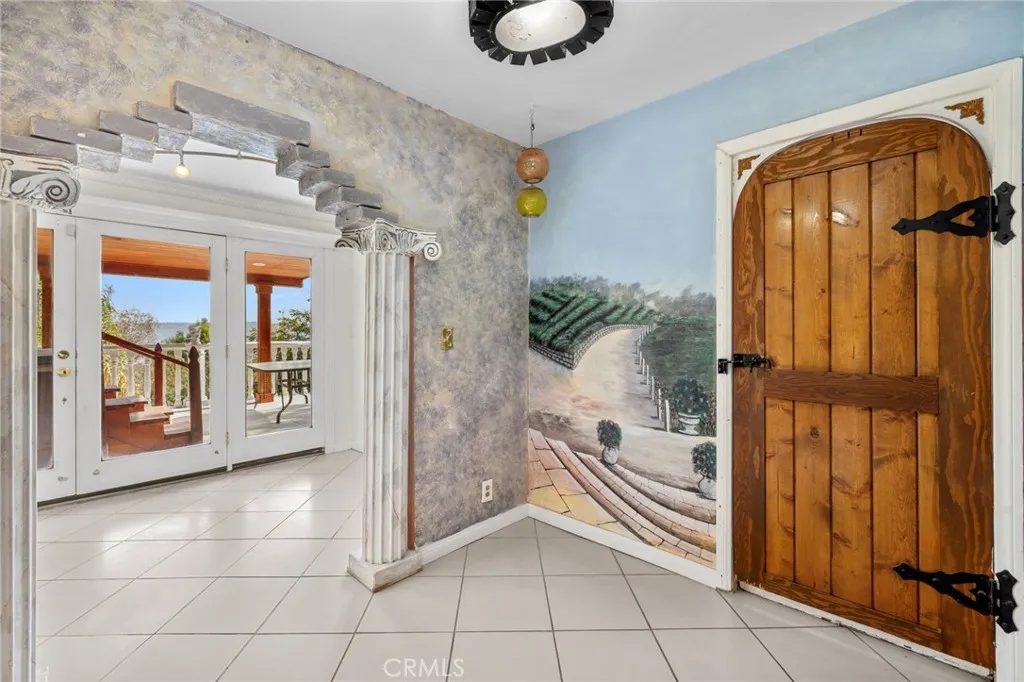Welcome to this modern Mediterranean style 4 bedroom, 4 bath home in the prestigious Los Feliz hills with amazing views of the city and hillside. The front of the home features an electric gate which leads to the attached two car garage. As you enter this home you are greeted by a dramatic chandelier and expansive windows with incredible views. Several custom stained glass windows throughout add to the ambiance. The spiral staircase in the entry leads to a room that could be a study. The main level of the home includes a bedroom with a full bathroom, a laundry and access to the garage. The floors throughout much of the home are tiled. One level below the entry level is the expansive main living area with pitched ceilings, a dining room, living room with a wood burning fireplace and the entertainment oriented kitchen. The kitchen features an very large center island, a wine rack, granite counters, stainless steel appliances and an abundance of lighting. Included on this level of the home is the primary bedroom with a generous sized walk in closet and a large bathroom with an oversized shower. This level of the home also features two additional bedrooms, a full bathroom, an additional bonus room and a large wine cellar. As you open the exterior doors of these rooms, you find yourself on a generous sized deck that features a BBQ and lounge area, complete with outdoor furniture. But the unbelievable views are the real star of this portion of the property. An added bonus is the completely paid for solar system for lowering the utility bill. Additionally there are exterior stairs