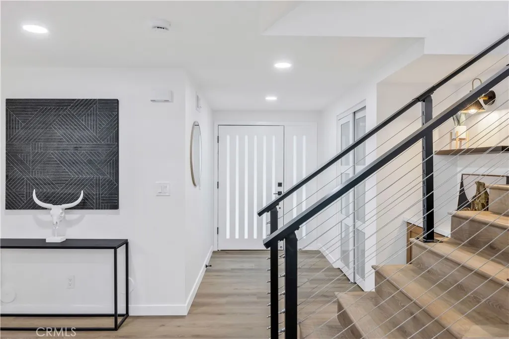 Step into a beautifully redesigned modern home where clean lines, natural light, and thoughtful craftsmanship come together seamlessly. The first-floor primary suitewith dual closets and a spa-inspired en-suite bathadds comfort, accessibility, and everyday luxury, making the layout ideal for all ages. This fully remodeled residence features paid-off solar, an open floor plan, high ceilings, and a spacious kitchen anchored by a striking waterfall island and sleek grey-and-gold accents. New flooring, upgraded fixtures, and contemporary finishes continue throughout, leading to an inviting upstairs living area and additional bedrooms. Outside, the backyard offers a calm and relaxing setting with new lush sod, modern landscaping, ambient lighting, and mature fruit trees. A stylish pergola adds the perfect touch for outdoor dining, gatherings, or quiet evenings at home. With updated sprinkler system, beautiful curb appeal, and a layout designed for comfort and everyday living, this move-in-ready home brings together modern design and effortless livability.