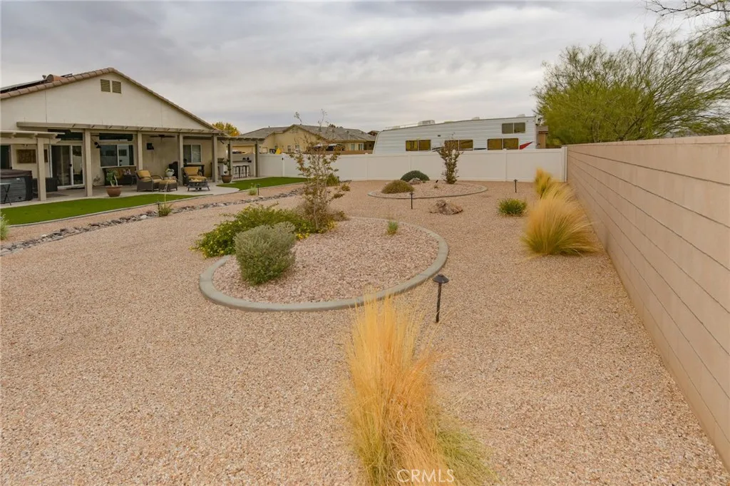 Beyond the Curb, A Hidden Paradise on Fresian From the moment you pull up, youll know this home is something special, but whats waiting beyond the front is even better than you imagined. Tucked in a quiet Apple Valley neighborhood, this stunning four-bedroom, three-bath home is filled with space, beauty, and surprise around every corner. The curb appeal is just the beginning, with beautifully manicured landscaping, a wide driveway, and gated access to the backyard. Out back, youll find a private, fully fenced paradise, complete with soothing landscaping, a patio cover that stretches the entire length of the home, a huge storage shed, and a spacious, inviting hot tub for relaxing evenings under the stars. Inside, everything has been pristinely maintained and thoughtfully updated with fresh paint, new flooring, and a layout that flows with ease. The kitchen is jaw-dropping! Modern, spacious, and ready to host your next gathering, while the oversized family room opens seamlessly to the backyard for that perfect indoor-outdoor feel. The split floor plan features a Gigantuous primary suite on one side of the home, offering peaceful privacy, while the other wing includes two generous bedrooms and and full bathroom and a third mini master with its own bathroom. This is one of those homes where every inch has been cared for, and every space offers more than meets the eye. Additionally you will have paid for solar and the ability to assume a 2.75% loan! Come experience the wow for yourself.