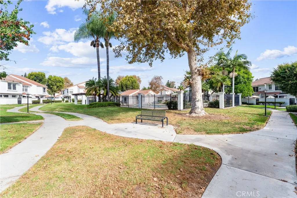 Beautifully Upgraded Attached Home in the Gated Villa Verde Community -Welcome to this upgraded, turnkey home located within the sought-after Villa Verde Gate Community. Enter through a private gated courtyardspacious enough for outdoor entertaininginto an open and bright floor plan enhanced by fresh interior paint. The main floor features plank-style flooring that continues up the staircase. The expansive living room flows seamlessly into the dining area, creating an ideal space for gathering. The beautiful, upgraded kitchen showcases shaker cabinetry, quartz countertops, stainless steel appliances, and custom floating shelvesa true chefs delight. An updated guest bath is also conveniently located on the main level. Upstairs, the impressive Primary Bedroom Suite offers double-door entry, vaulted ceilings with recessed lighting, a highly desirable walk-in closet with custom organizers, and a primary bath complete with an oversized walk-in shower. Two additional bedrooms are generously sized and include large closets with built-in organization systems. Additional highlights include direct-access two-car garage with epoxy flooring, in-garage laundry, and recessed lighting throughout. This home is truly turnkey with thoughtful upgrades at every turn. The gated community provides a relaxed, low-maintenance lifestyle with beautifully maintained greenbelts, a pool, spa, and BBQ areas. The neighborhood also conveniently borders the Santa Fe Springs Athletic Fields. Rare to Find a home move in ready!