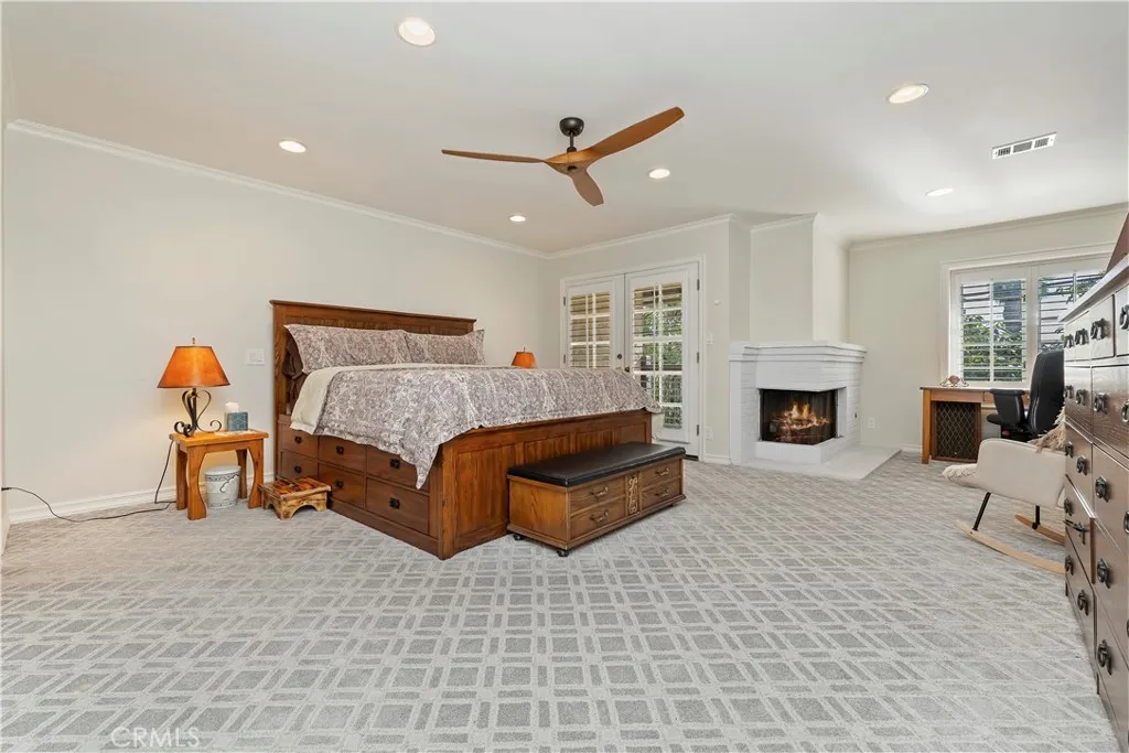 Nestled in the heart of Sierra Madre The Village of the Foothills this beautifully updated 1,650 square-foot townhome offers a peaceful setting and effortless move-in appeal. Step through elegant double doors into a welcoming living room featuring engineered hardwood floors, crown molding, recessed lighting, and a cozy fireplace perfect for relaxing or entertaining. The light and bright kitchen boasts crisp white cabinets, quartz countertops, and sleek stainless steel appliances, thoughtfully designed to meet the needs of todays homeowner. Adjacent to the kitchen is the dining area, complete with a dry bar and additional storage. Both the kitchen and dining area open onto the rear private patio via a sliding glass door and a separate French door, offering seamless indoor/outdoor flow for entertaining or dining al fresco. Beyond the rear patio is the finished two-car garage with epoxy flooring. Downstairs, you'll also find an updated powder room and dual coat closets. Upstairs are two spacious bedrooms, each with its own renovated ensuite bath, newer carpeting, generously sized closets, and plantation shutters for added charm and privacy. The expansive primary suite includes a versatile flex space ideal for a home office or fitness area, as well as a private balcony with tranquil skyline and treetop views. Separating the two suites is the convenient upstairs laundry and built-in storage, completing the home's functionality. Located just moments from Sierra Madres beloved shops, cafes, parks, and hiking trails, this exceptional townhome blends comfort, style, and location