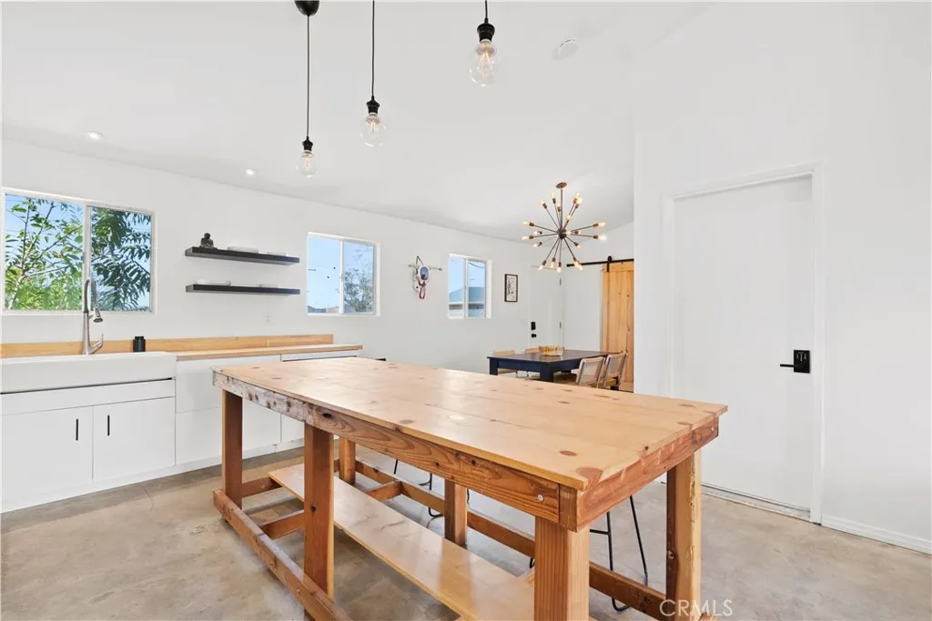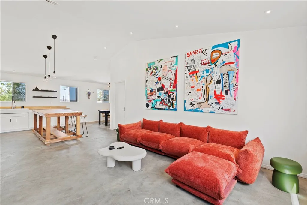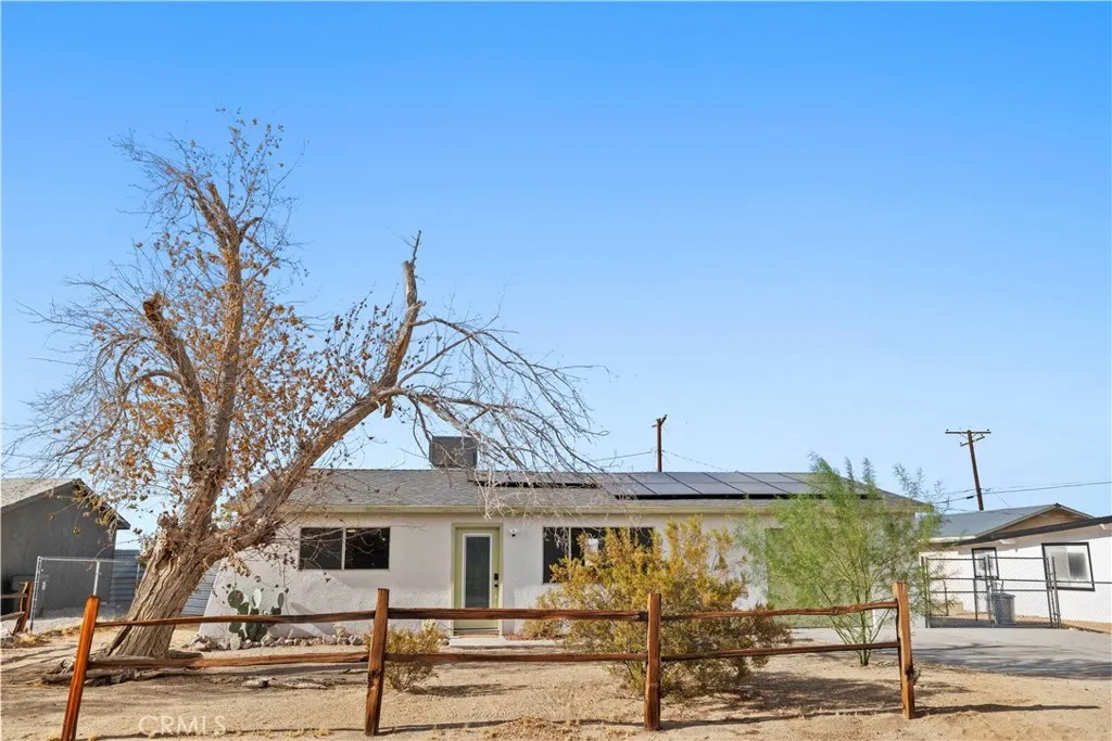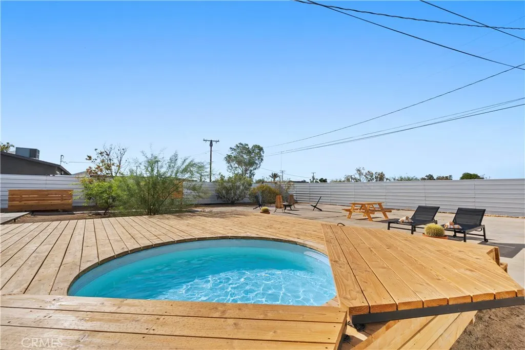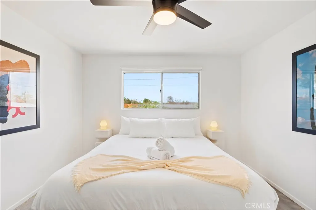 Step into this fully furnished 2 bedroom, 1 bathroom artistic retreat where modern design meets creative flair. With vaulted ceilings and an open concept floorplan, this home flows effortlessly from the sleek kitchen to the airy living and dining areas, creating a spacious and welcoming environment perfect for relaxing or entertaining. Thoughtfully curated furnishings and bold, contemporary decor and unique personality with the interior decor, accompanied by a lot of natural light and concrete floors. Out back, the real magic happens! Designed for entertaining and unwinding, the expansive backyard features two private outdoor showers, a stylish cowboy tub for cooling off, and multiple chaise loungers for soaking up the sun. Whether hosting friends for a day in the sun or BBQ, or enjoying a quiet evening under the stars, this vibrant outdoor haven is the perfect extension of the homes creative soul, and is ideal for those who appreciate style, comfort, and a touch of the unexpected. ***There is a power purchase agreement with Sunrun for approximately $120 per month, and current homeowner has a negative electricity bill.