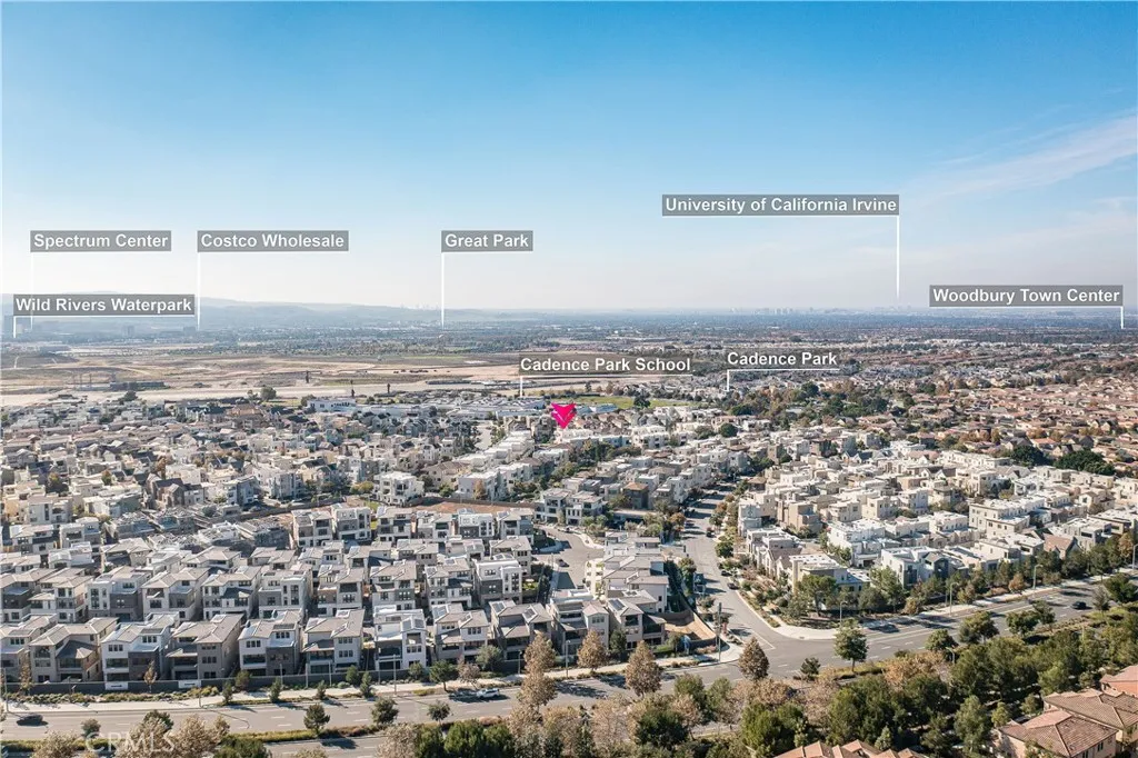 Discover the unparalleled lifestyle of Great Park in this rare and highly sought-after corner unit at 177 Frame. Perfectly positioned, this contemporary 3 Bed + oversized Loft/4th Bedroom offers a blend of modern luxury, exceptional natural light, and a truly walkable location in the prestigious Cadence Park neighborhood. This home's premium corner lot location provides an open, airy feel with elevated views and a sense of privacy rarely found in the area. Step inside to a spacious, bright, and turnkey interior featuring high-end finishes throughout. The heart of the home is a stunning chef's kitchen boasting a gorgeous designer-style countertop and backsplash, a large center island, and stainless steel appliances, flowing seamlessly into the open-concept great room and dining areaperfect for daily life and entertaining. The flexible floor plan is a dream for modern families. While officially a 3-bedroom, a spacious third-floor oversized loft with a full bath and private balcony is currently used as an ideal 4th bedroom or a perfect private office/retreat, offering endless versatility. Retreat to the generous primary suite with a large walk-in closet and a luxurious en-suite bathroom. Location, Location, Location! You are just a short stroll from the award-winning Cadence Park K-8 School and highly acclaimed Portola High School, making school runs a breeze. Enjoy the resort-style amenities that define Great Park Neighborhoods: sparkling pools, spas, BBQ areas, clubhouses, playgrounds, and an extensive network of scenic walking and biking trails. Conveniently located minutes
