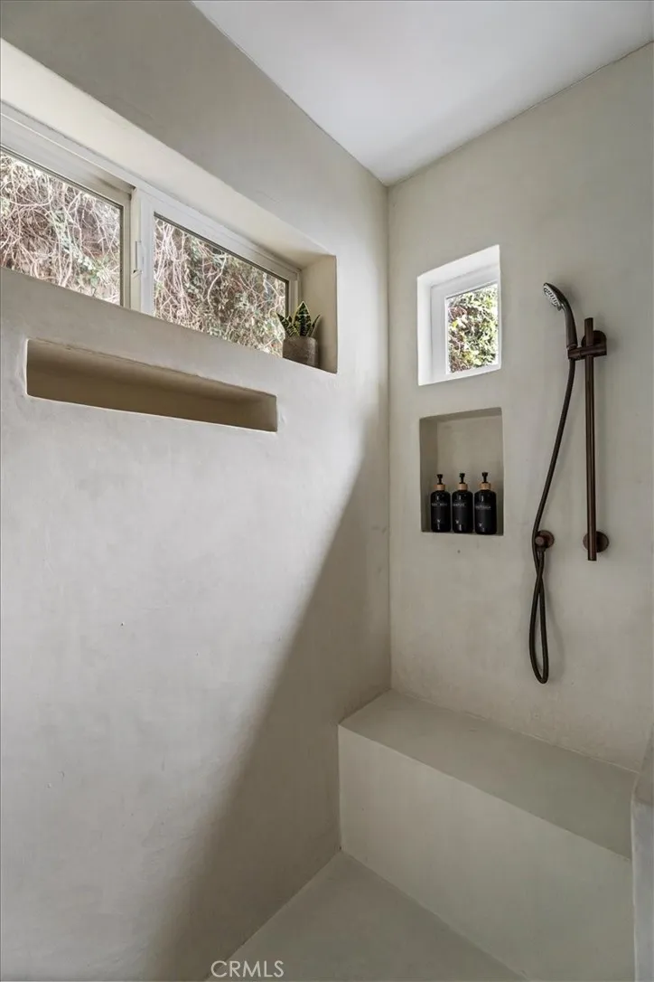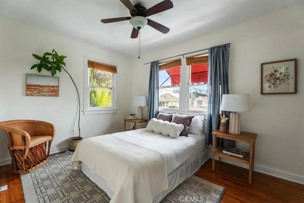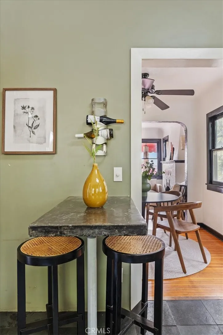 Set above the street behind lush landscaping, this 1929 Echo Park Spanish Revival is a true trophy property. Through the arched entry, you will find a patio with stunning views. The formal living room features hardwood floors, walls of windows, a stunning fireplace surround and arched doorways on both sides. Through the formal dining room, you will find an updated kitchen with raised ceilings, peaceful views of the yard, and a breakfast table. Beyond the kitchen is a family room with a private patio and media system that controls the zoned interior/exterior speaker system. The primary bedroom and en-suite bath are the newest addition to the home bringing the vibes of a luxury resort and spa featuring vaulted ceilings, built ins, designer finishes, and remarkable natural light shining through the large windows. The secondary bedrooms are well appointed with generous windows, closet space, and a remodeled bathroom. Step outside to a remodeled backyard oasis featuring a jacuzzi, fire-pit, outdoor kitchen, multiple dining and entertaining spaces and a detached two-level bonus studio. Facing the street there are 4 temperature controlled, generous sized, finished garage spaces. Enjoy the thoughtful upgrades like the central HVAC, laundry area, two tankless water heaters, and ADT. Do not miss this one of a kind him in one of the hottest neighborhoods in LA.