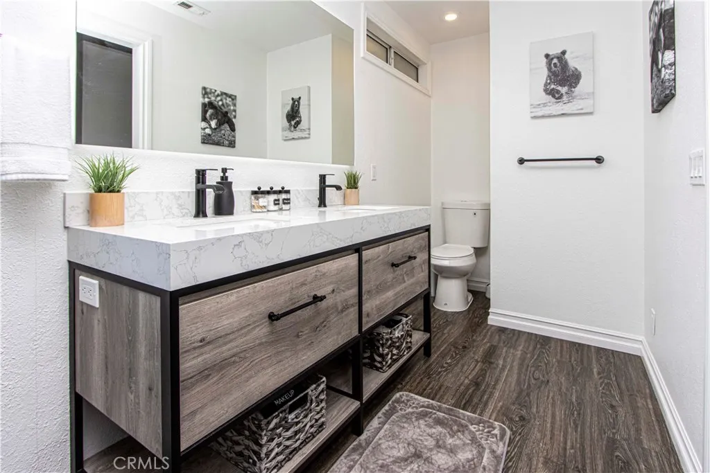 Breakaway to the mountains with this gorgeous Lake Arrowhead home. Whether it is your weekend getaway, full-time living, or investment piece this, home presents itself as a great opportunity for any buyer. This home is completely turnkey and has been updated with modern finishes throughout. At the heart of the home is the spacious fireplace-centered living area and sumptuous chef's kitchen with beautiful quartz countertops that give the space a bright elegance. On the second level of the home, you will find three well-sized bedrooms including the master bedroom suite boasting an impressive and luxurious bathroom. Imagine a day out on the lake or the golf course with loved ones and then winding down the day's adventures with a BBQ on the deck and relaxation under the pine trees with the ambiance of surrounding mountains. Conveniently located within lake rights, this home is in a nice quiet area central to the lake, country club, golf course, and national forest for all your outdoor adventure activities. It has also proven to be a successful vacation rental, offering the potential for income-generating while keeping it as a part-time vacation home. Experience mountain living at its finest with this great home.