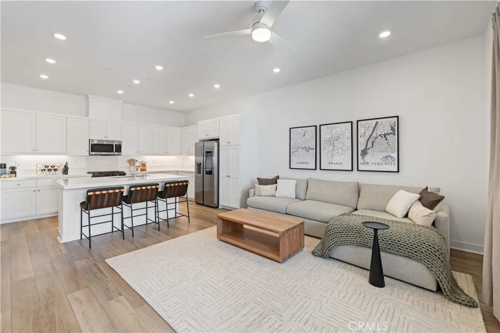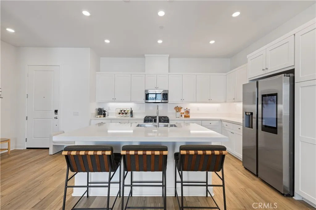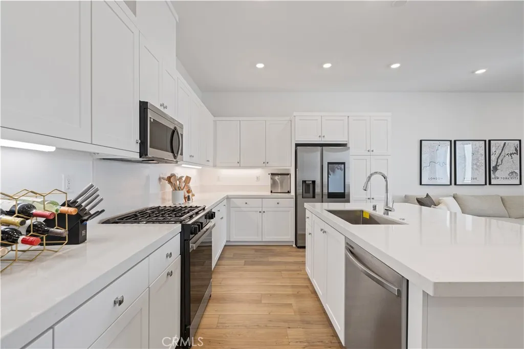 WONDERFUL TOP Floor ONE Bedroom with Valley Views!! Located in the Five Point Community of ELEMENT! Absolutely beautiful finishes on this 1+1 with High Ceilings, Creamy White Walls, & Luxury Plank Vinyl Flooring. Charming Formal Entry with Built-Ins leads to the Great Room. The Expansive Center Island with a Breakfast Bar anchors the White Kitchen which boasts Marble-like Quartz Counter Tops, Stainless Steel Appliances, & Abundant Cabinetry adjacent to the Large Living Room with Views and a French Door that leads to the Balcony Space. There is a Spacious Bedroom with a Gigantic Walk-In Closet, Plush Carpeting and more Views! A Laundry Closet with Stackable Washer & Dryer is included. There is an Extraordinary Private Storage ROOM across the hallway that belongs to this unit! An Attached Single-Car Garage with Electric Vehicle Charging on the first floor that leads to the stairway to the front door. This home includes all the amenities of Five Point's including Pool, Spa, Recreation Center, Sports Courts, Trails, and MORE! Terrific location for commuters. Near to Plentiful Amenities including dining, shopping, & fitness facilities.