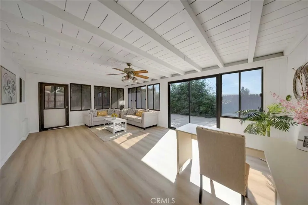 A standout feature is the permitted 300 sq. ft. sunroom( not included in the living sf), currently used as a versatile family room and home officeproviding valuable additional living space ideal for work, relaxation, or entertainment. Discover this delightful home tucked away on a peaceful, private and safe cul-de-sac in one of La Puentes most desirable neighborhood adjacent with City of Walnut. Offering a favorable northsouth orientation, this residence enjoys excellent natural light and balanced energy comfort throughout the day. Beautifully updated, the home features a double entrance door, a brand-new roof installed with Class A/ Fire-rated/30 year Shingle and Special ridges, new dual-pane windows and sliding doors are Double pane and Quite/ Heat resistant/ Energy-efficient, upgraded and completed rapiped of all hot & cold water lines systems, brand new fully remodeled kitchen showcasing modern white shaker cabinets, elegant white quartz countertops and backsplash, and top-rated stainless steel appliances. The brand new remodeled bathrooms have been tastefully renovated with contemporary finishes, creating a fresh and inviting atmosphere. The interior is further enhanced by energy-efficient recessed LED lighting and brand new high-quality waterproof SPC flooring throughout, fresh interior paint. The property also offers an oversized 2-car garage( potential future ADU) with extra storage space, adding convenience and functionality for homeowners. Plus extra parking on the driveway. Outside, youll find a lush garden oasis, perfect for unwinding or hosting gatherings in a
