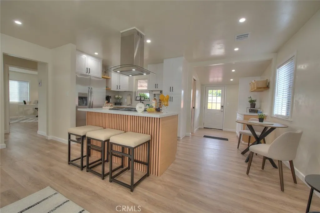 Discover this beautifully renovated 2 bedroom, 1 bathroom home, centrally located and thoughtfully upgraded throughout to offer modern comfort and effortless living. Step inside to an inviting open layout featuring brand-new flooring, fresh interior and exterior paint, and new recessed lighting that fills the home with warmth and brightness. The fully remodeled kitchen boasts new cabinets, updated backsplash tile, a new under-mount sink with stylish fixtures, Quartz countertops, a new garbage disposal, and a complete set of new appliances including a range, hood vent, dishwasher, and refrigerator. The bathroom has been tastefully updated with an upgraded walk-in shower, new vanities, new fixtures, and new toilets. The home also includes a convenient designated indoor laundry area with washer and dryer hookups, a wall-to-wall master bedroom closet, solid wood floating shelving, and an additional unpermitted half bathroom for extra convenience. Major system upgrades include new central air conditioning and heating, updated plumbing, updated electrical, a new water softener system, and an upgraded water heater. Outside, the property is fully enclosed with wood fencing and highlighted by upgraded exterior lighting, creating an inviting and private outdoor space. With meticulous renovations from top to bottom and a location close to everything, this move-in-ready home is the perfect blend of style, comfort, and convenience.