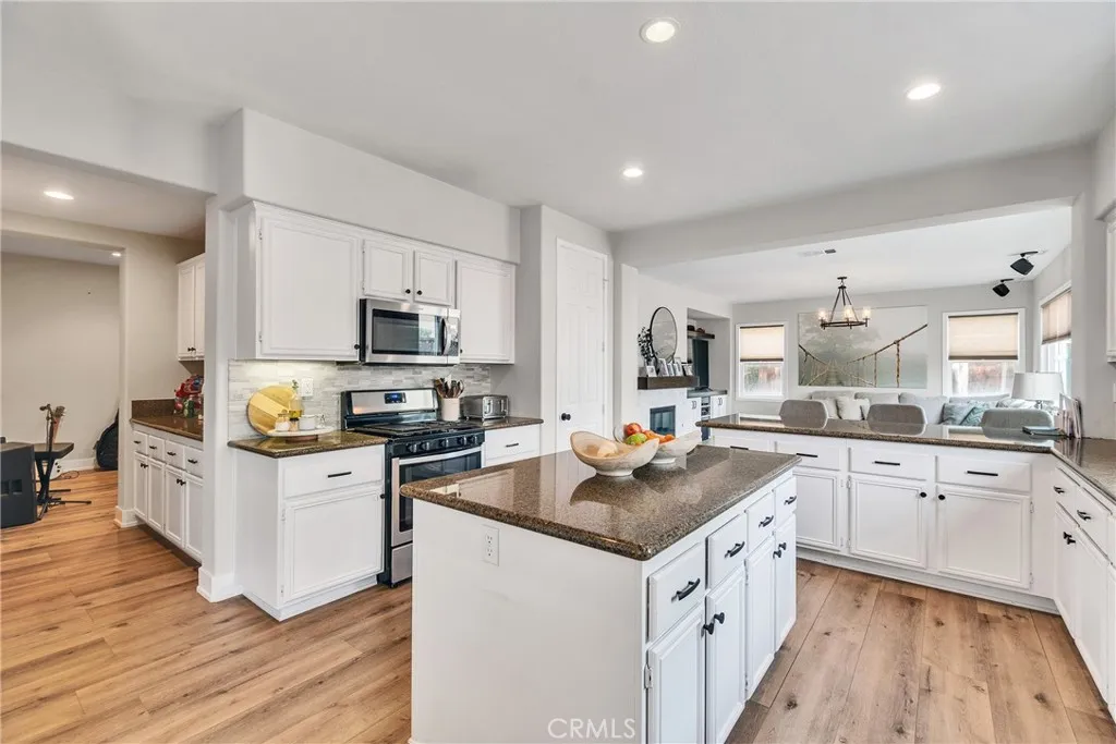 Beautiful 4 bedroom, 4 bath home offering 2,821 sq. ft. of spacious living in a desirable Moreno Valley neighborhood. This home features a convenient first-level bedroom and full bath, perfect for guests or multigenerational living. Formal living room, family room, formal dining room, and a kitchen with an additional eating area. The open kitchen overlooks the family room and offers granite countertops and ample cabinetry overlooks the family room. Home offers new flooring, upgraded lighting fixtures, and numerous windows providing ample natural light. The primary bedroom includes two separate walk-in closets. Laundry room is located on the first level with direct access to the 3-car tandem garage. Backyard features a private basketball court and space for outdoor activities. This home shows pride of ownership with upgrades throughout. Professional pictures will be uploaded soon.