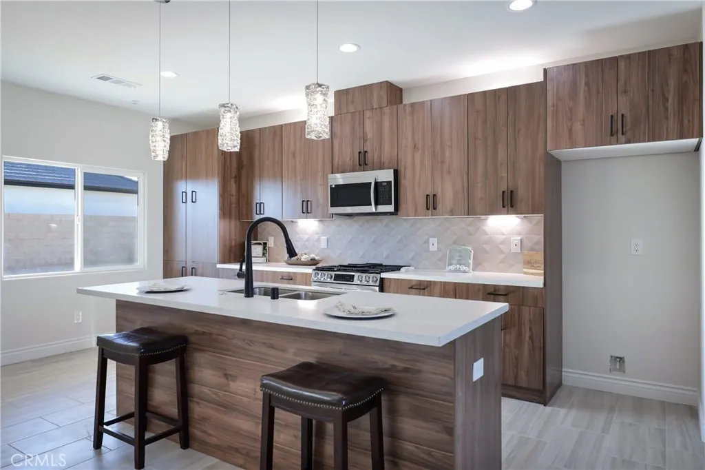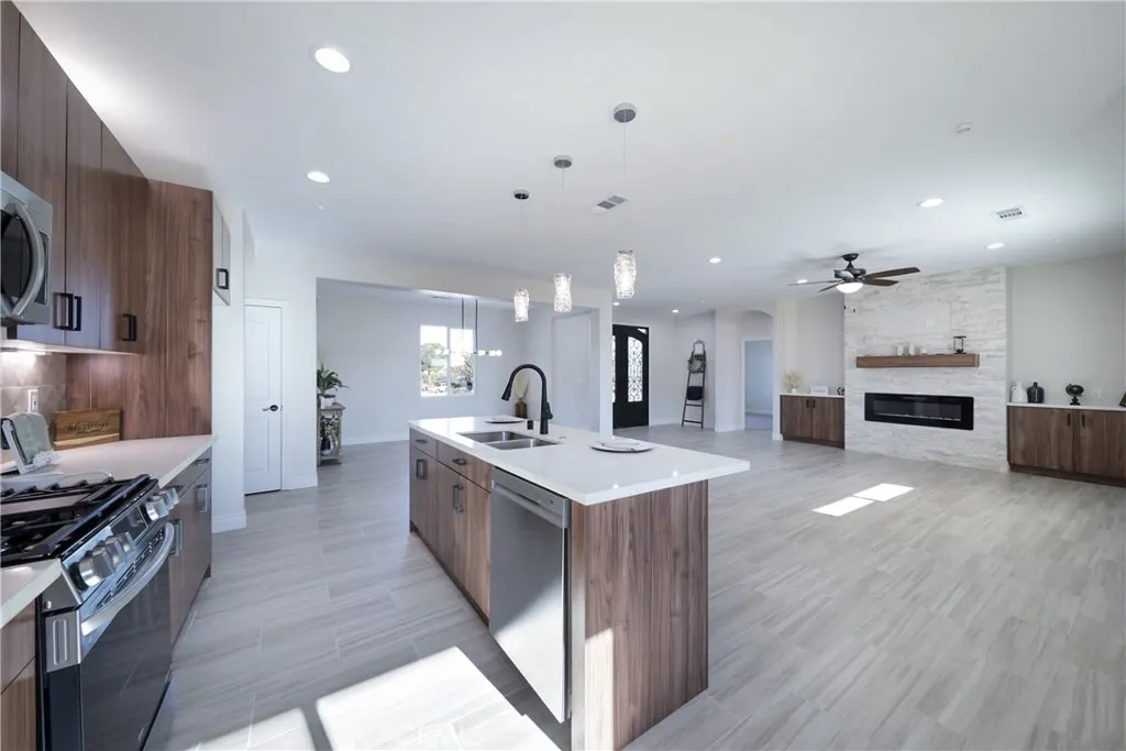 Semi Custom Home!!! This 1,908 sq ft home features 3 bedrooms, 1.75 bath, open kitchen to the family and dinning room, tile throughout all common areas, ceiling fans in all bedrooms and living room including an electrical fireplace for those cozy winter nights. The master suite includes an en-suite bathroom with a large enclosed shower and walk in closet. All upgrades come included in this home such as quartz countertops, energy efficient stainless steel appliances and did I mention PAID SOLAR!!! Located in a corner lot which includes RV parking. This house has pristine landscaping and great curve appeal.