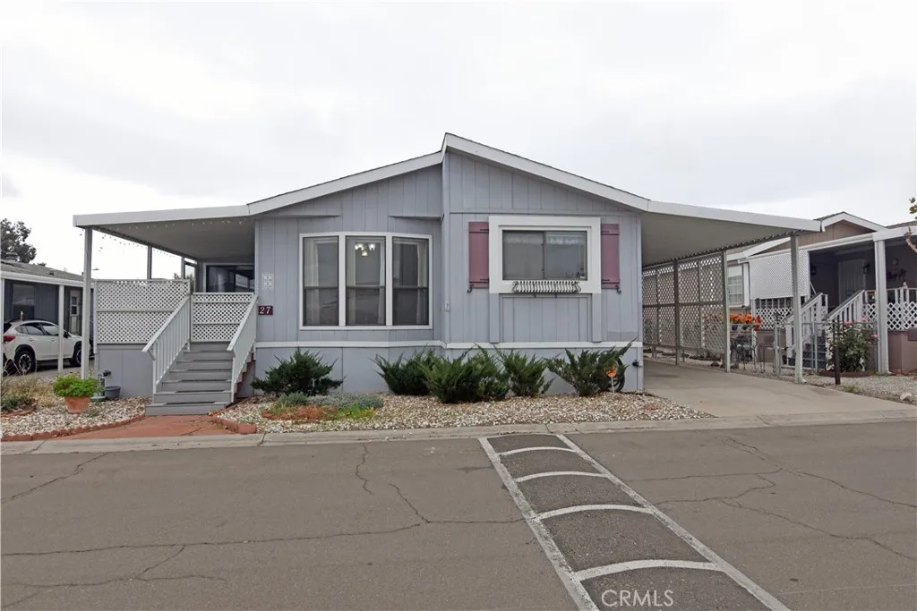 Discover comfortable and convenient living in this spacious Hallmark Winchester triple-wide home, offering 1,646 sq. ft. of open and inviting living space. Located in a peaceful, well-kept community close to shopping and with easy freeway access, this home is perfect for commuters and those who enjoy nearby conveniences. Step inside to a bright and airy living room, ideal for family gatherings, entertaining friends, or simply relaxing. The kitchen features abundant cabinetry, generous counter space, and sleek Corian-style countertops. It opens to a charming dining area with large bay windows that fill the space with natural light. The master suite includes a walk-in closet, and all bedrooms are comfortably sized. One bedroom has been thoughtfully converted into a full home office, complete with everything you need to work from home efficiently. Enjoy your morning coffee or unwind in the evening on the gated front patio. Additional features include indoor laundry, a storage shed, and a fully fenced yard. The community itself is clean, friendly, and offers great amenities, including a pool and spaperfect for relaxing or enjoying the sunshine.