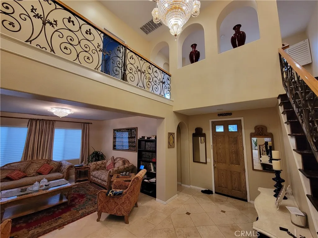 Welcome to the exceptional Dos Vientos home you've been dreaming of! This home features an expansive floor plan with 5 bedrooms and 4.5 bathrooms, offering unparalleled indoor/outdoor living. The flexible layout includes a desirable downstairs bedroom and full bathideal for guests or a home office. Upstairs, the luxurious Master Suite is a true retreat, featuring a large walk-in closet, a bathroom with double sinks, a vanity area, and a separate tub and shower. Completing the upstairs are three additional spacious bedrooms and a charming cute loft. The gourmet eat-in kitchen is a chef's delight, boasting quartz countertops, stainless steel appliances, and a huge center island that opens seamlessly to the large family room anchored by a marble fireplace. Gorgeous wood floors throughout the second floor, and tile floors on first floor. Custom iron staircase, Designer paint and elegant plantation shutters. The backyard features a built-in outdoor kitchen/BBQ center and a charming trellis. Multiple distinct seating areas surrounded by lush, mature landscaping. Enjoy wonderful curb appeal including two separate garages accommodating three cars. The prime location offers easy access to the highly-rated Sycamore Canyon K-8 School, beautiful local parks, and The Village shopping center. This is a MUST-SEE property that will not last!