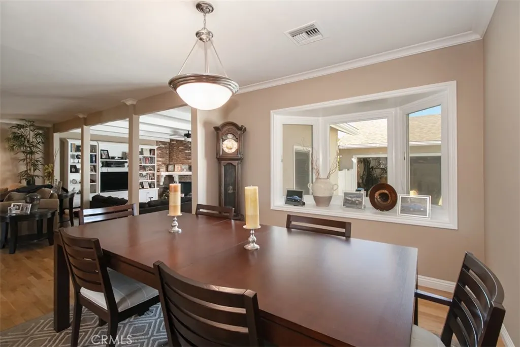 Charming single-story home on a tree-lined street in the prestigious Burbank Hills! This beautiful home features 3 bedrooms and 2 bathrooms on a large lot. Hardwood floors flow throughout, complemented by crown molding and recessed lighting in every room. Newer vinyl windows with window coverings provide energy efficiency and abundant natural light. The bright kitchen boasts maple cabinetry, black granite countertops, a stainless-steel sink, and a pantry, perfect for everyday living. An attached carport with a redone concrete driveway provides easy drive-up access. The master bedroom includes a bathroom for privacy and comfort. Recent upgrades include newer A/C and heating systems and a tankless water heater, ensuring modern efficiency. French doors from the living room lead to a spacious, partially covered patio with newer brick flooring, ideal for entertaining. Enjoy backyard views of the Burbank mountains and plenty of space for outdoor living.