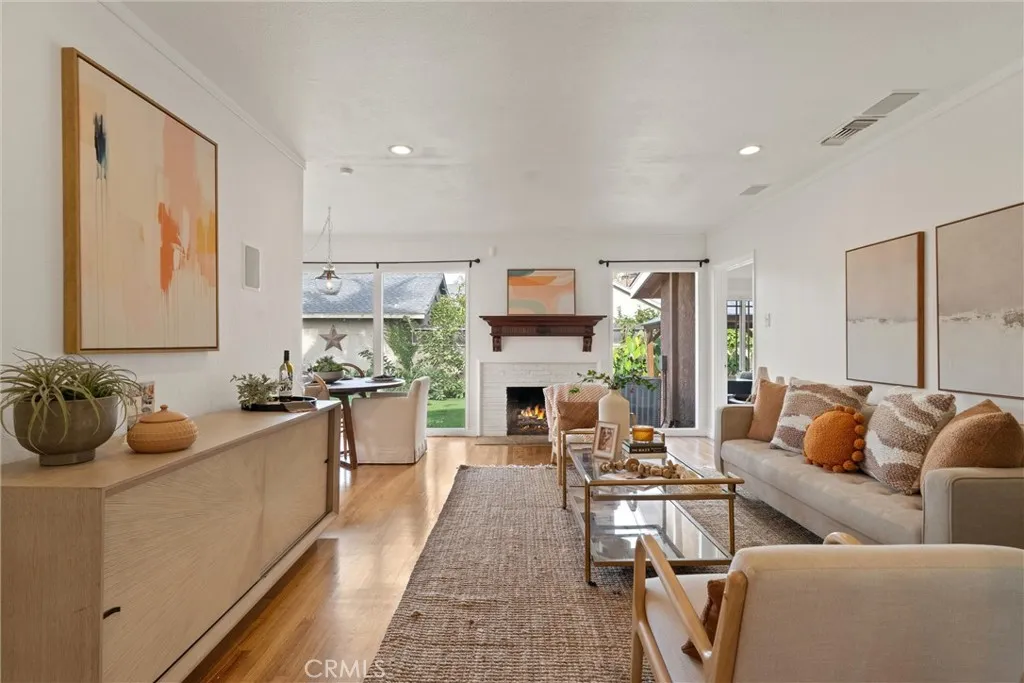 Welcome to your beautifully updated home in the highly sought-after Plaza neighborhood of East Long Beach! Nestled on a quiet interior street, this spacious 4-bedroom, 2-bath residence (with the 4th bedroom offering flexible use as a bonus room, office, or guest space) blends modern comforts with classic Long Beach charm. Step inside to a spacious tiled entryway that opens into an airy living and dining area, complete with refinished hardwood floors, large windows, and natural light pouring in. Enjoy cozy evenings by the wood-burning fireplace, seamlessly connected to the main living spaces. The bright, welcoming kitchen features white shaker cabinets, ample counter space, and tons of natural light, along with a dishwasher, microwave, and range for easy everyday living. Retreat to the huge primary suite, offering a true sanctuary with a shower/tub combo, double vanity, and an expansive walk-in closet. The additional bedrooms provide plenty of versatility for guests, work, or play. Modern updates and conveniences include central heat and air, a tankless water heater, built-in speaker system, new roof, and a new automatic garage door. Youll also appreciate the dedicated laundry room and attached garage for added functionality. Step outside to your private backyard oasiscomplete with a lush lawn, planter beds, and a charming gazebo with a sitting area, perfect for outdoor dining, morning coffee, or warm summer evenings. The yard also features mature mango, strawberry guava, and white guava trees, offering fresh fruit and a vibrant touch of tropical delight to your outdoor spac