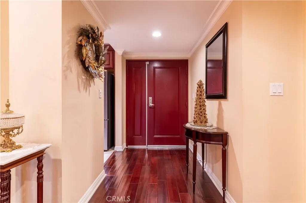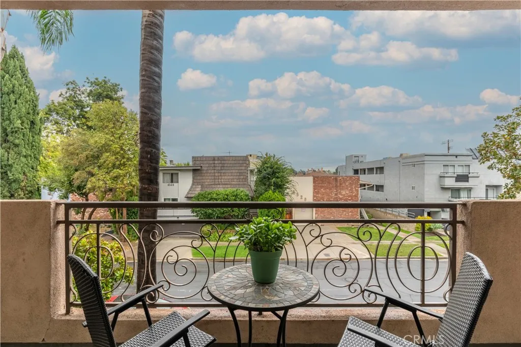 Welcome to Sierra Heights, a coveted 24-residence boutique building in prime Sherman Oaks. This rare end unit delivers approx. 1,800 sq ft with 3 bedrooms and 2.5 baths, exceptional privacy (only two homes in this section), and just one shared wall. A formal double-door entry opens to an expansive great room with recessed lighting, crown/base moulding and rich hardwood floors that lead to a wide covered balcony with treetop outlooks. The entertainers kitchen features granite counters, full-height mosaic tile, pendant lighting, designer cabinetry, dual sinks and stainless appliances including JennAir range & microwave, Bosch dishwasher and GE refrigerator, plus breakfast-bar seating. The king-size primary suite offers plantation shutters, a custom walk-in closet and a spa bath with dual sinks, marble counters, soaking tub and separate glass shower. Two additional generous rooms (ideal bedrooms/office/gym) are served by a beautifully tiled hall bath, with a stylish powder room for guests. In-unit stackable laundry, central HVAC and abundant storage throughout. Community amenities include controlled access, elevator, meeting room, guest parking, two assigned garage spaces for this unit and a private approx. 6x7 secured storage room. HOA dues are about $680/mo and include water, EQ insurance and common-area maintenance. All on a quiet, tree-lined street moments to Ventura Blvd cafs, the Galleria, Fashion Square and easy 101/405 access. Turnkey, spacious and beautifully finished, dont miss it.