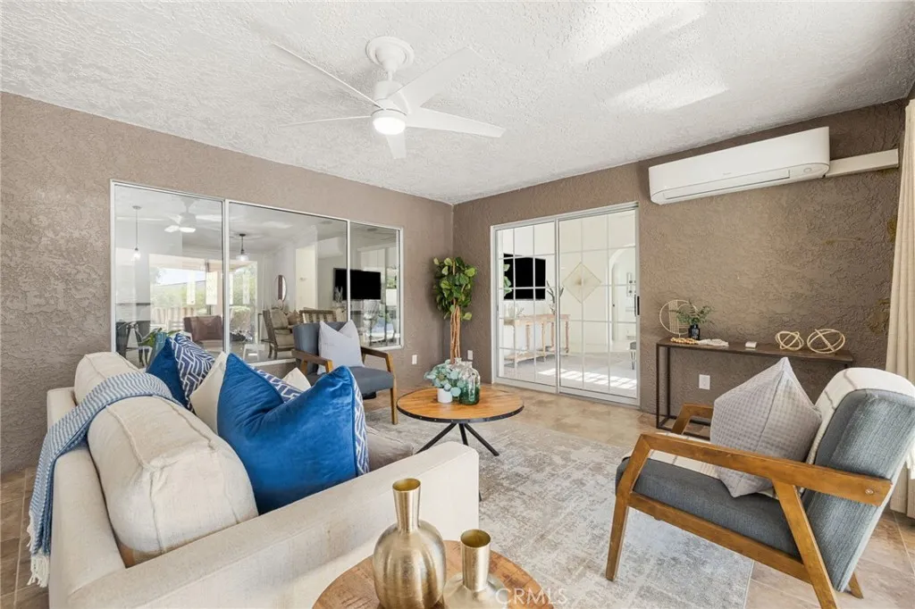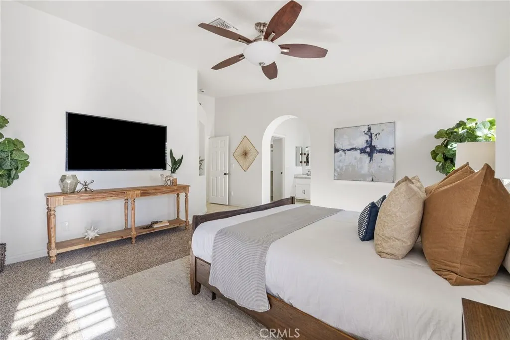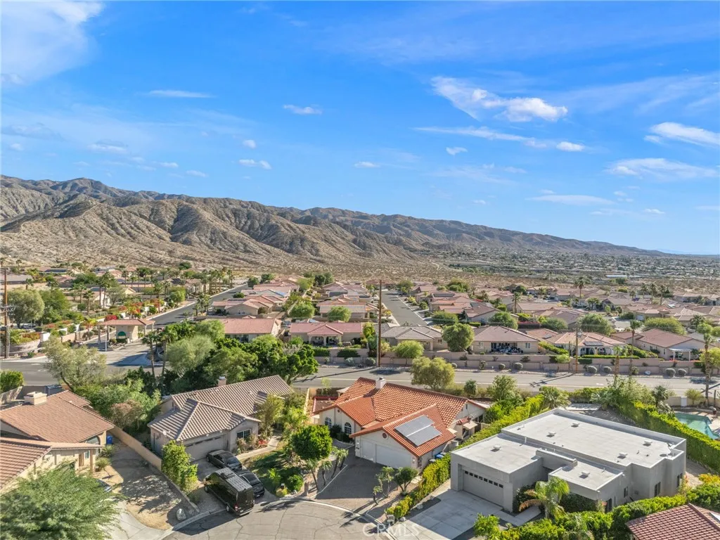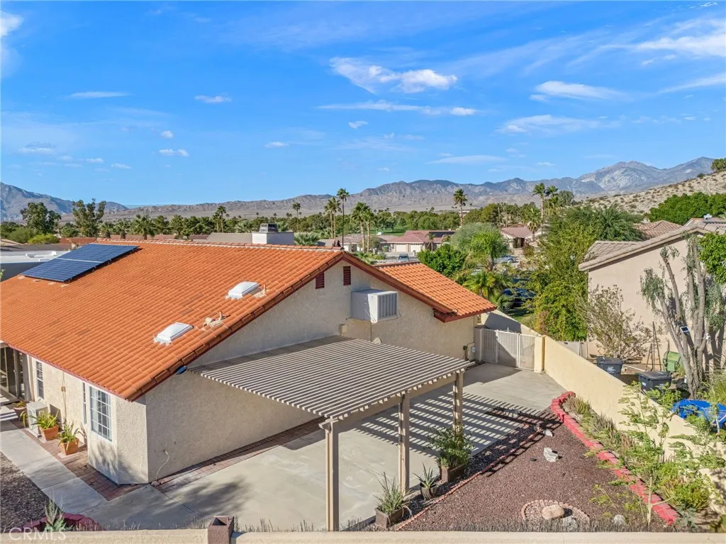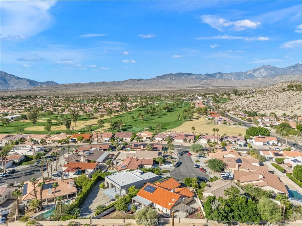 Welcome to 64991 Barnes Ct, an immaculate single-family home nestled in the beautiful golf course community of Mission Lakes Country Club. This expansive 2404 square foot residence is situated at the end of a quiet cul-de-sac on a large 9583 square foot, pie-shaped lot. The open floor plan includes a great room with wet bar, perfect for entertaining. The large permitted room addition is perfect as a family room, game room, or as a relaxing retreat. Step outside to your private back yard that includes a large covered patio with views of a rock waterfall feature, impeccably maintained landscaping, and mature fruit trees. The kitchen features granite counter tops with breakfast bar, freshly refinished cabinets, a greenhouse window, and includes a stainless steel refrigerator. The kitchen has direct access from the garage to make unloading groceries very convenient. The indoor laundry room comes complete with washer and dryer included. This home has been tastefully updated with fresh paint throughout, and new carpet in all three bedrooms. The primary suite bathroom boasts a double sink setup and large over-sized walk-in shower. Secondary bathroom has a double sink vanity and includes a Safe-Step walk-in tub. Each bedroom provides ample space, and the primary bedroom walk-in closet ensures plenty of storage. This home has solar panels to make make cooling off in the summer months very affordable. The three car garage has built in storage cabinets and plenty of space for your golf cart so you can hop in and drive to the 1st tee, country club, on site restaurant and bar, picklebal