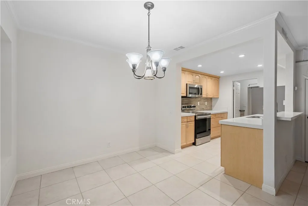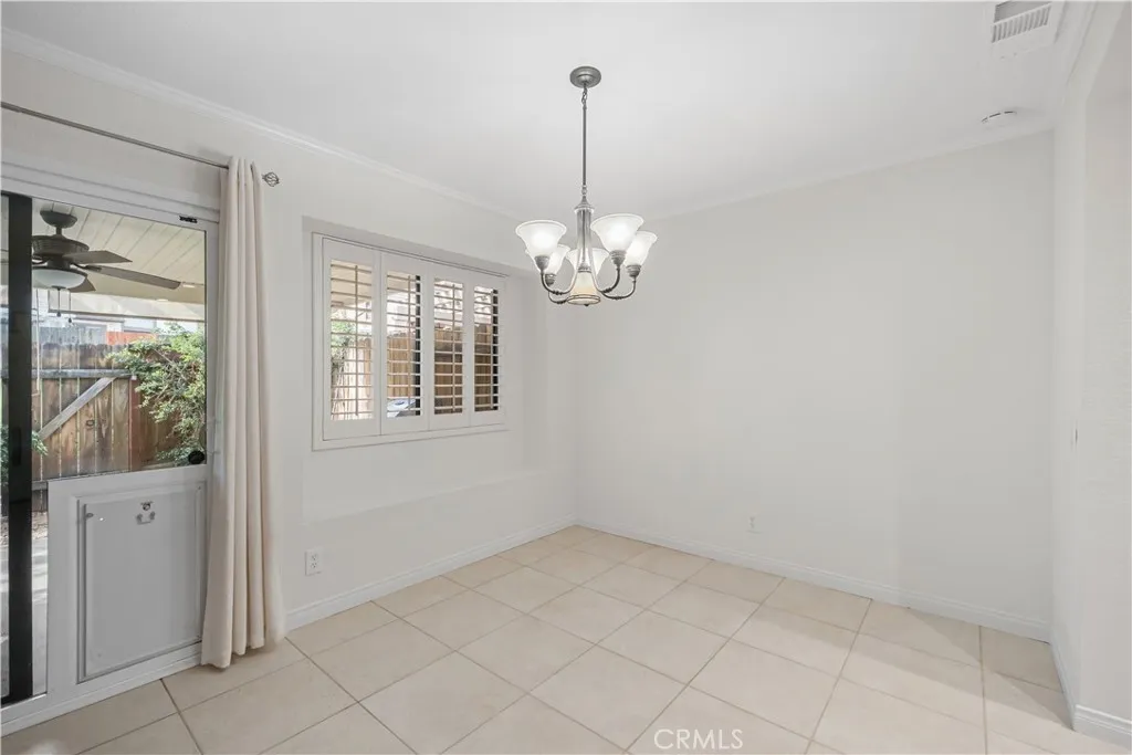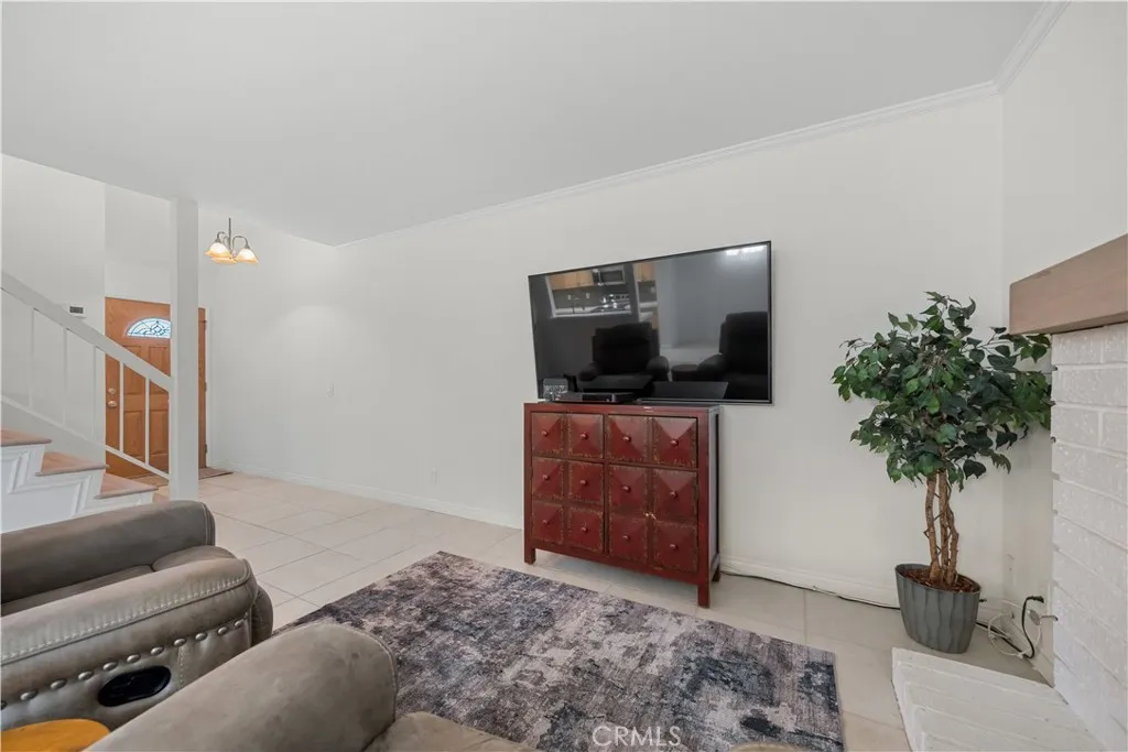 Move-in-ready two-story townhome in the Alta Loma Woods community, offering an open floor plan, central AC, and direct-access 2-car garage with epoxy flooring. The living room features a painted brick fireplace, plantation shutters, and a sliding door to a private backyard with a full-length covered patio and ceiling fan. The kitchen includes quartz countertops, mosaic tile backsplash, stainless steel appliances, recessed lighting, a dual-basin sink, and a pass-through bar to the living area. Adjacent dining area offers backyard views and tile flooring. All bedrooms are upstairs, each with its own bathroom. The primary suite includes vaulted ceilings, two closets, plantation shutters, and a full bathroom with tiled shower surround and updated cabinetry. The second bedroom features a walk-in closet, updated ceiling fan, and an ensuite bathroom. Additional features include crown molding, neutral paint, wood-look flooring throughout the upper level, and tile flooring on the main level. The downstairs powder room offers a pedestal sink and beadboard wainscoting. The separate laundry room provides upper storage cabinets and direct access to the garage. The private backyard includes space for outdoor dining or lounging. Community amenities include a pool, spa, clubhouse, and landscaped greenbelts with walking paths. Convenient access to the 210 Freeway and close to shopping, and multiple local parks including Miller Park and Red Hill Community Park.