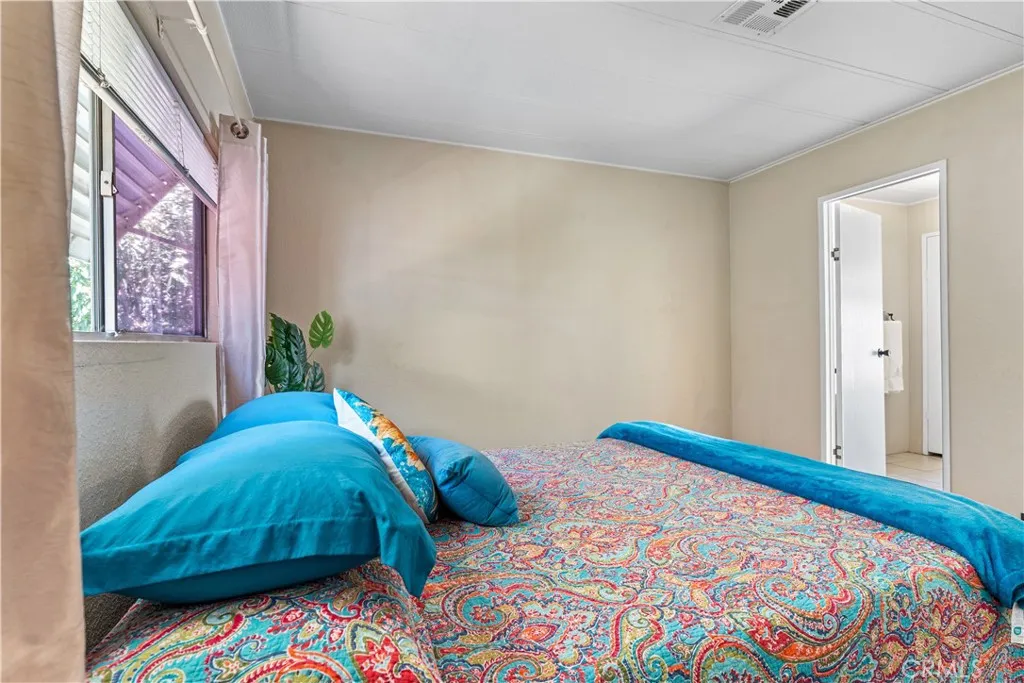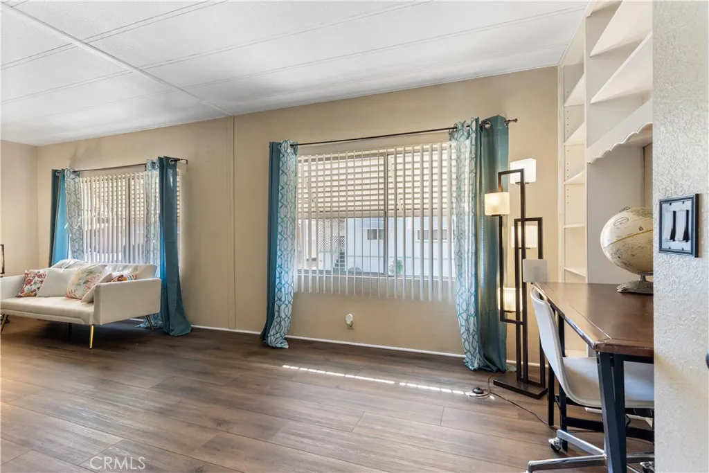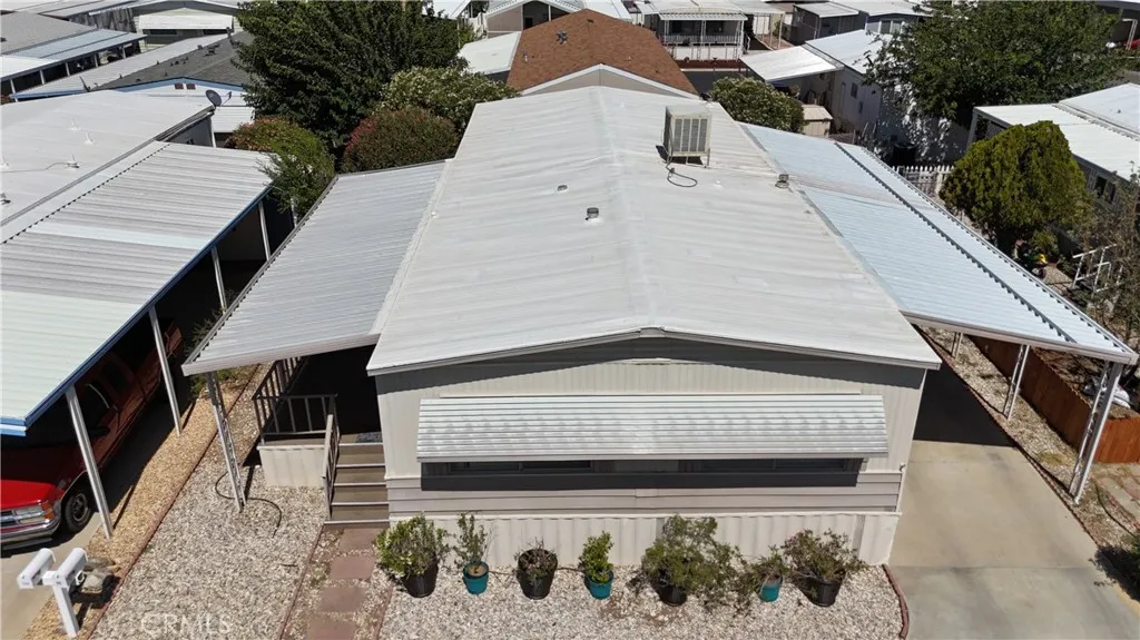 Welcome to your ideal retirement retreat! This charming 2-bedroom, 2-bathroom home offers comfort, convenience, and low-maintenance living in the desirable 55+ gated community of Victor Villa. Step into a spacious living room that flows into the dining area, complete with a ceiling fan and built-in hutch. The kitchen features a new dishwasher, gas stove, wall oven for baking, water purification faucet, kitchen pantry, and ample storage throughout. Brand-new double-paned windows brighten every room, and the home boasts luxurious dark mahogany-look flooring, tile in the kitchen and bathrooms, and warm neutral interior paint. French doors with built-in blinds lead to a generous front porch with new tan outdoor carpet, perfect for enjoying morning coffee or dining al fresco. Additional highlights include: Gas washer and dryer hook-ups. New guest bathroom vanity with sink and faucet. Newer air conditioner. Two outdoor storage sheds. Covered parking and easy-care landscaping. Pet lovers will appreciate the lawn area located just behind the neighboring home, and the community also offers RV parking. Victor Villa residents enjoy a wide range of amenities including monthly social events, recreation room, swimming pool, exercise gym, community potlucks, and scenic interior roads ideal for walking, jogging, bicycling, or cruising in a golf cart. Utilities are low, and the leased land rent is affordable. This is a 55+ senior community, and all residents must qualify with Victor Villa management. Conveniently located near the I-15 freeway, shopping centers, Costco, and gas stations. Env