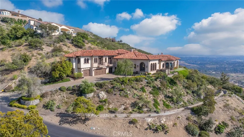 Welcome to an exquisite European-style mansion at Cielo in Rancho Santa Fe! Situated in the prestigious Cielo community, this home benefits from an elevated location atop one of the highest coastal peaks in San Diego County. It is a gated community offering a private, serene lifestyle with luxurious amenities. Recognized by the National Association of Home Builders as "Community of the Year," Cielo boasts breathtaking panoramic vistas from Catalina to Coronado, and from Big Bear to Baja. The stunning scenery includes snow-capped mountains in the morning and tranquil ocean sunsets in the evening. Inspired by the coastal villages of the northern Mediterranean, Cielo combines the beauty of nature with elegant architectural design. This extraordinary home embodies European charm with modern luxury. High ceilings, custom wall treatments, and elegant European-inspired details are found throughout. The gourmet kitchen features upgraded cabinetry, including a hidden refrigerator, high-end appliances, and a spacious center island. Each room is designed to capture the stunning 270-degree views of the surrounding landscape. The private backyard offers an idyllic setting with breathtaking panoramic views, perfect for entertaining or simply relaxing in solitude. Designed for an exclusive, resort-style living experience, Cielo features the Cielo Club with 8,000 sq. ft. of indoor facilities including event lounges, a catering kitchen, meeting rooms, a state-of-the-art fitness center, and spa facilities. For outdoor recreation, residents enjoy a competition pool, a childrens wading pool, c