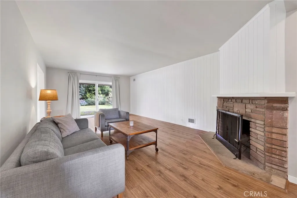 Located in a quiet pocket of Van Nuys is a beautifully updated 4-bedroom, 2-bath home offering over 1,800 square feet of living space on a generous 6,700 SF lot. Blending modern upgrades with preserved mid-century character, this home delivers comfort, charm, and an incredibly functional floor plan. From the moment you arrive, the curb appeal stands out, an expansive concrete driveway, lush landscaping, stone-accented front porch, and an inviting classic blue front door that sets the tone for the warmth inside. Step inside to a thoughtfully designed layout featuring warm laminate wood flooring with new baseboards, smooth ceilings, new double-pane windows and sliding doors, and a spacious living room anchored by a charming wood-burning stone fireplace. The fully remodeled kitchen is a true highlight, complete with tile floors, quartz countertops, white shaker cabinetry with glass inserts, subway tile backsplash, and LG stainless-steel appliances. Just off the kitchen is a cozy breakfast nook framed by large windows overlooking the front yard, a perfect daily dining space. For larger gatherings and holidays, the formal dining area sits adjacent to both the kitchen and living room, keeping everyone connected. All four bedrooms are generously sized, offering ample closet space and flexible layouts for family, guests, or work-from-home needs. The home showcases two original retro-tiled bathrooms, beautifully maintained and increasingly rare to find in such pristine condition. One includes a tub/shower combo, while the second offers a dedicated walk-in shower. Additional improvem