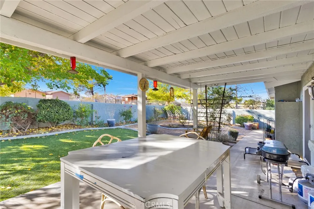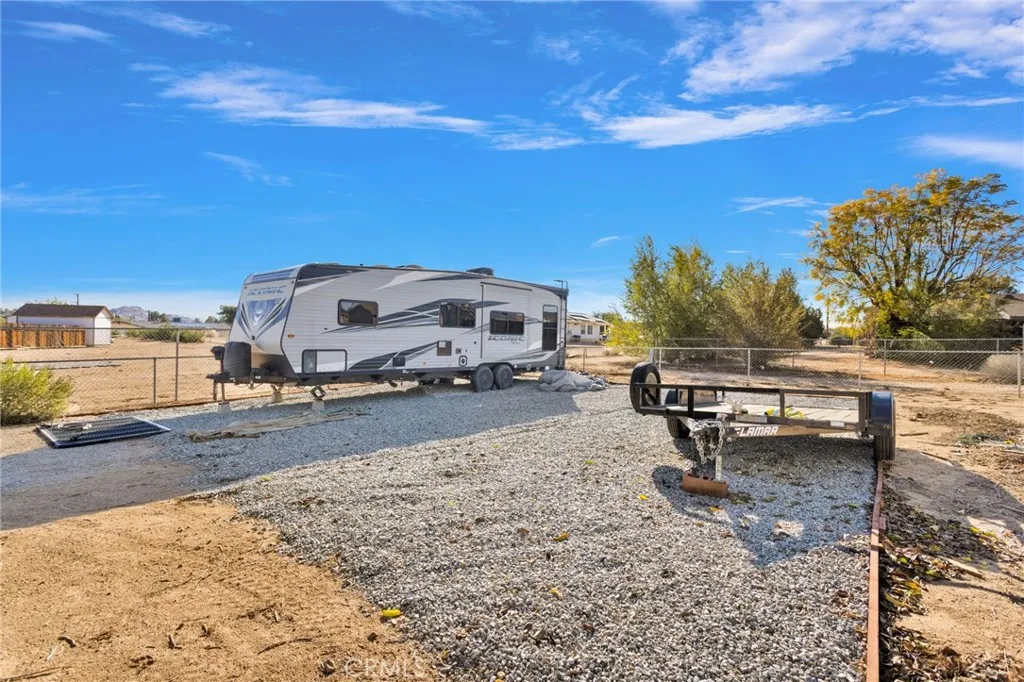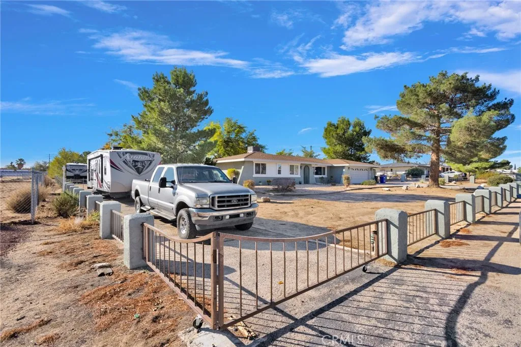 Welcome to 19215 Kinai Rd, a beautifully updated home located in one of Apple Valleys most desirable, established neighborhoods. This 3-bedroom, 2-bath property blends warm modern finishes with a comfortable, move-in-ready feelperfect for anyone looking for a home thats truly turn-key. Inside, youre greeted with a bright, open layout featuring laminate flooring, fresh interior paint, and new vinyl double-paned windows that fill the space with natural light. The living room is the heart of the home, centered around a striking German-schmear wood-burning fireplace that creates the perfect cozy atmosphere. The kitchen has been tastefully updated with custom wood cabinetry, granite countertops, a stylish tile backsplash, new stainless-steel sink, and modern appliances. Additional custom cabinetry in the hallway provides extra storage and a warm, cohesive design touch. Both bathrooms have been renovated with new vanities, updated lighting, mirrors, fixtures, and clean tile finishes. The primary bathroom features a spacious walk-in shower and fresh updates throughout. All bedrooms include plush new carpet with upgraded padding for added comfort. A dedicated laundry room and a 2-car garage provide plenty of utility and storage. Outside, the home boasts new exterior paint and a generously sized lot with beautiful landscaping, drip irrigation, and cross-fencingideal for pets, kids, or creating separate activity spaces. Enjoy the shaded covered patio, perfect for outdoor dining or quiet evenings. The property also includes gated RV parking and two large storage sheds, providing excel