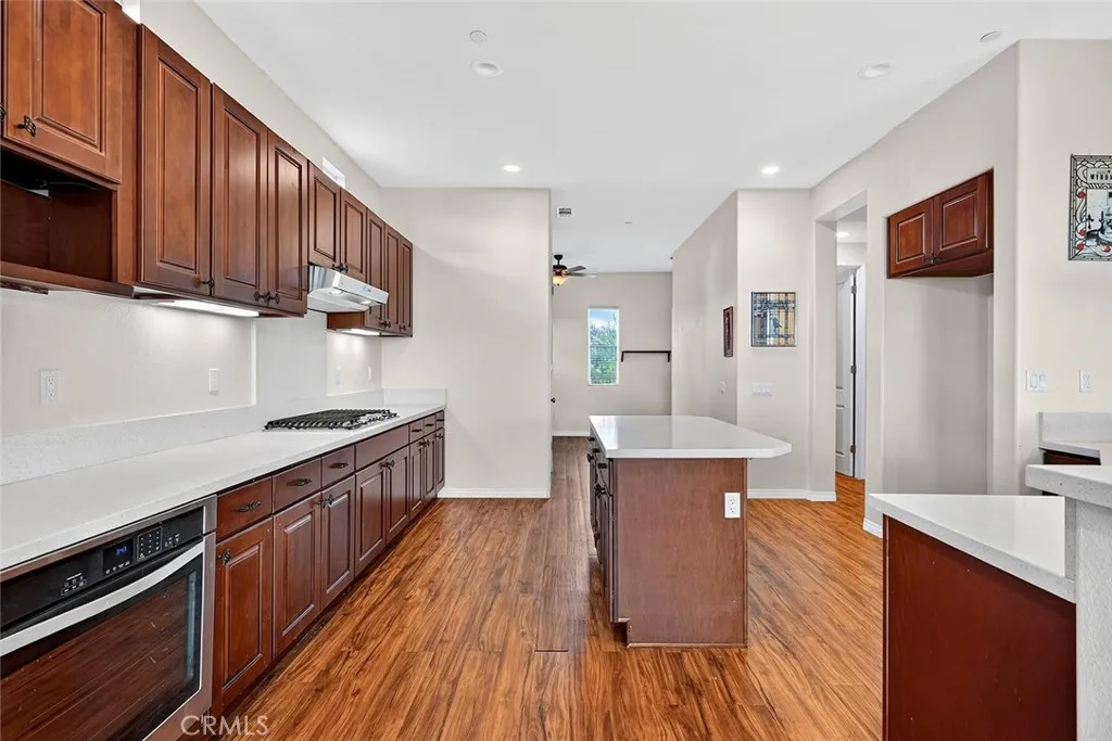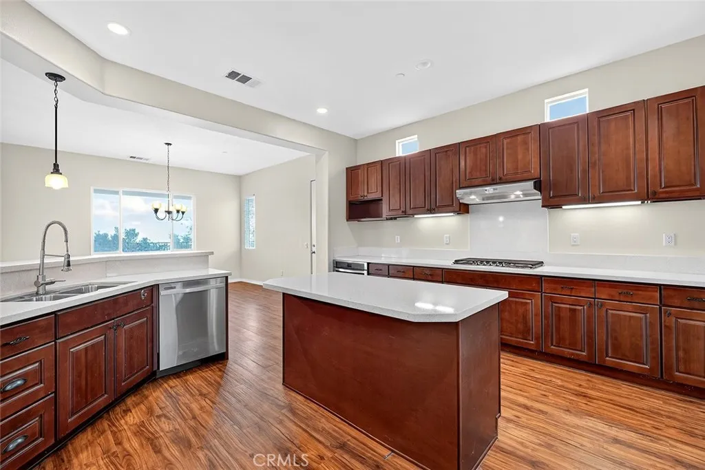 MOVE IN READY! NESTLED IN THE HILLS OF THE PRIVATE, GATED COMMUNITY OF SKY MESA! Car collectors, RV owners, Animal Enthusiaststhis one checks all the boxes. Built in 2015, this spacious 2,820 sq ft home offers 4 large bedrooms plus a big office, 2.5 baths, and a 1540 RV garage/workshop on a paved road with stunning views. Set back from the street for privacy, the home features panoramic Diamond Valley Lake views from the back sidecapturing both ends of the lake. Inside, youll find tall ceilings, an airy open floor plan, and expansive windows that fill the home with light and showcase the scenery. The large kitchen includes generous counter space, an island with breakfast bar seating, stainless steel appliances, a propane gas stove, and a walk-in pantry. Adjacent to the kitchen is a spacious office with built-in desk and cabinetry. The dining room and living room both take full advantage of the lake views, with access to the full-length covered patio through a wide glass slider for seamless indoor/outdoor living. The Main Suite overlooks the lake and includes a walk-in closet and spacious bathroom with a soaking tub with garden window, separate shower, and dual sinks. The immediate yard is beautifully landscaped with ornamental and shade trees on irrigation, a fenced area for pets, and even a raised viewing deck. The attached three-car garage is fully finished, with a large laundry room conveniently located inside the entry. The 1540 RV garage is ideal for RV storage, a shop, or hobby spacefeaturing 50 amp plug, drywall, and recessed lighting. The property offers gently roll