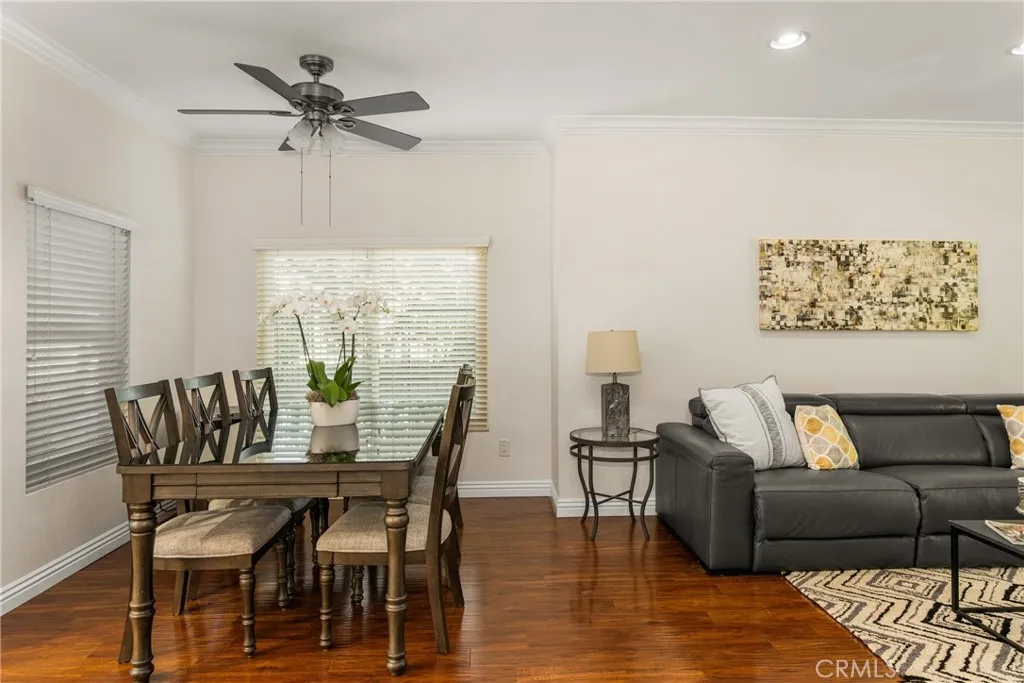 Highly renovated ground-level end unit in the prestigious gated community of Woodlake. This rare offering features two private patios and a premium, exceptionally private location. Step inside to an open floor plan with soaring ceilings, wide-plank laminate flooring, crown molding, recessed lighting, and a cozy fireplace. Brand-new, high-end Renewal by Andersen windows and sliding doors fill the home with natural light while enhancing energy efficiency. The remodeled kitchen includes stainless steel appliances, custom soft-close cabinetry, and elegant quartz countertops. A charming breakfast nook opens to a tranquil private patioalso accessible from the second bedroomcreating an ideal space to unwind. The beautiful primary bathroom offers a spacious vanity with abundant storage, a sunken tub and shower, and recessed lighting. The second bathroom is also a full bathroom with a tub and shower combo. The generous living room, with its impressive ceiling height, extends to a large private side patio overlooking a serene stream and waterfallperfect for entertaining or everyday relaxation. A washerdryer closet and an additional exterior storage closet provide exceptional convenience. This home includes one assigned carport, one assigned uncovered parking space adjacent to the building, and ample guest parking. The community is known for its lush landscaping, mature trees, ponds, waterfalls, and peaceful water features. HOA amenities include a pool, spa, exterior maintenance, water, trash, termite service, and exterior electricity. A beautifully updated homethoughtfully designed a