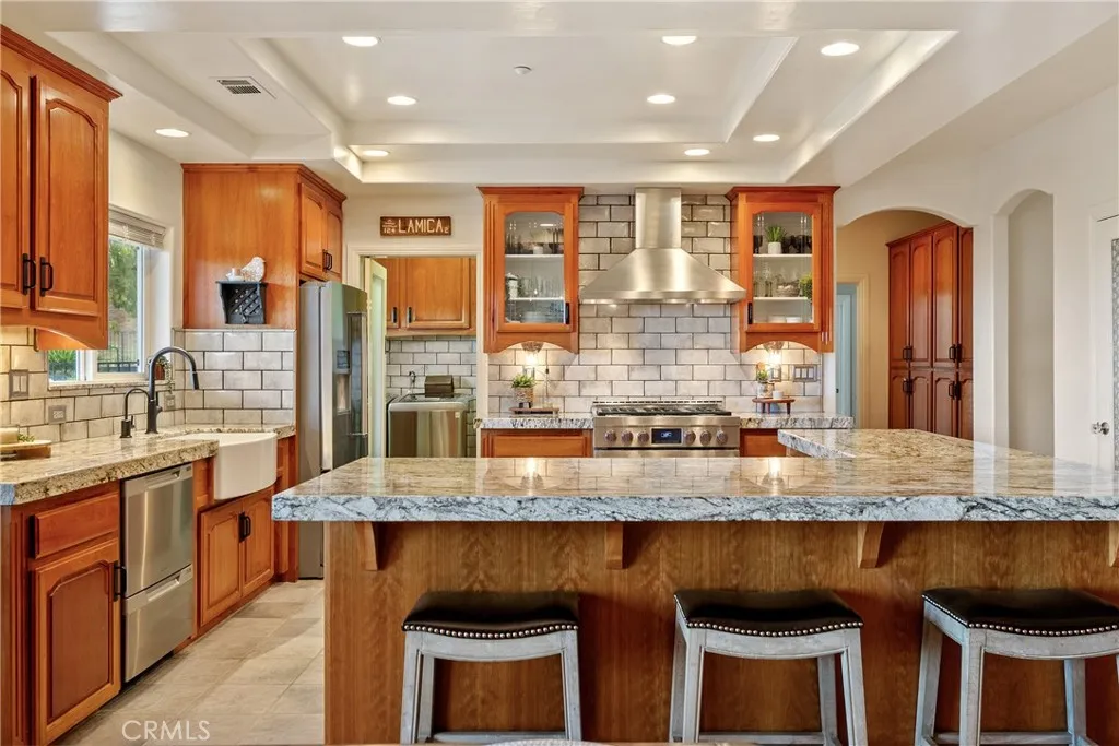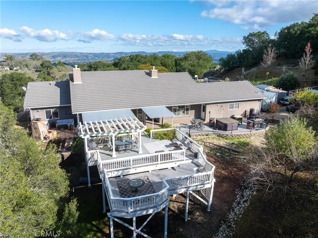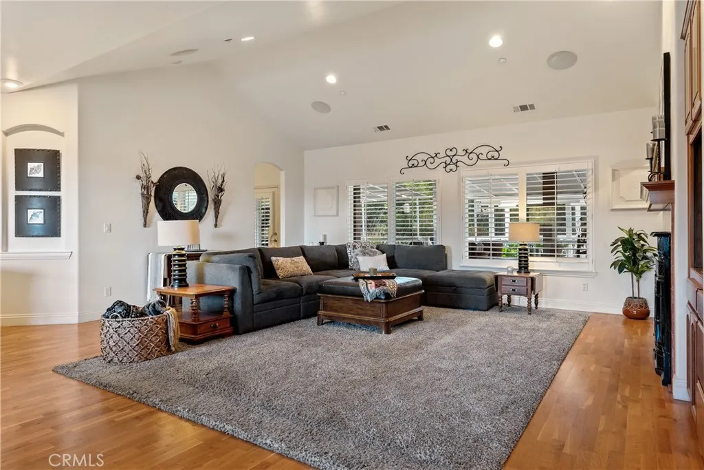 Welcome to this exceptional 3 bedroom, 2 bathroom executive home offering 2363 sf of refined living space on two separate APNs totaling 3.76 acres in the prestigious 3F Meadows community. As you approach through the automatic gated entrance, the property unfolds beautifully, with the home perfectly perched atop the hill to capture sweeping, unobstructed views. A charming east-facing, covered patio welcomes youan ideal spot to enjoy peaceful mornings. Step inside and youre greeted by rich hardwood floors that flow through much of the main living area. The spacious living room impresses with vaulted ceilings, built-in cherry cabinetry and a cozy gas fireplace. The dining area is enhanced by a large picture window that frames the stunning vistas beyond. The gourmet kitchen is a true standout, featuring new granite countertops, a stylish tiled backsplash and ample space to entertain with ease. Retreat to the massive primary suite, thoughtfully designed as a calming sanctuary. It offers plantation shutters, a French door to the backyard and a gas fireplace for added ambiance. The luxurious ensuite bath includes a soaking tub, a walk-in shower with dual shower heads and a generous walk-in closet complete with organizers. Two guest bedrooms and a full guest bath are privately situated on the opposite side of the home. Outside, youll find an expansive covered patio with lighting and wiring for soundperfect for year-round enjoyment. The serene setting includes a tranquil water feature, an outdoor fireplace and a large deck ideal for relaxing or entertaining. Additional amenities inc