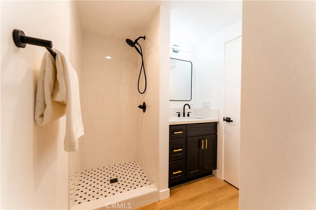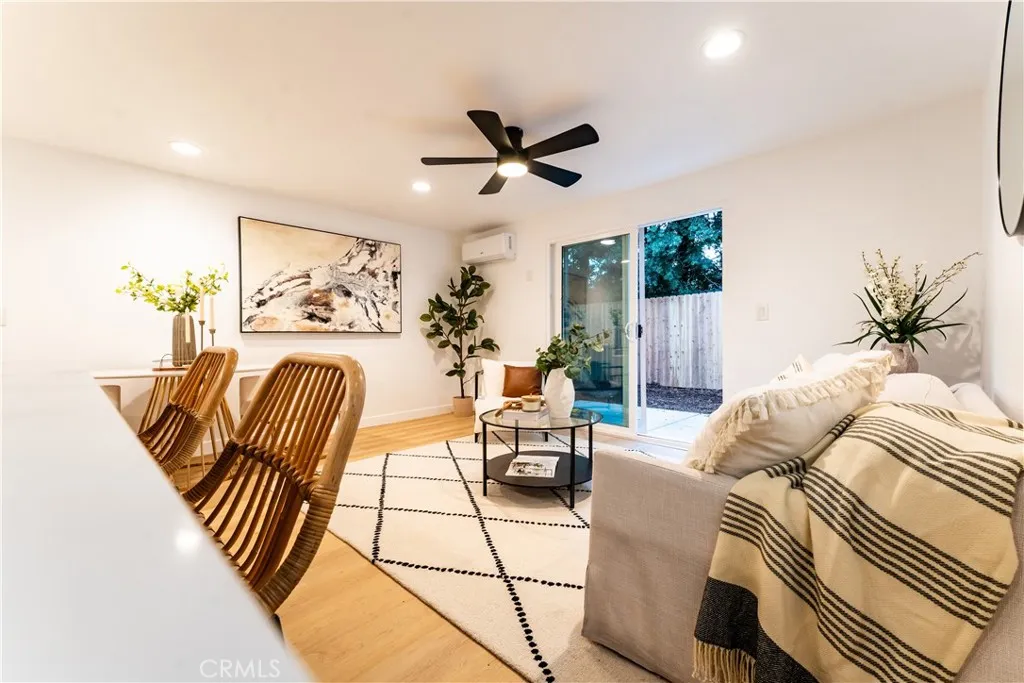 Stunning, fully renovated 2-bedroom, 2-bathroom TIC in Mid-Wilshire Los Angeles. This beautifully reimagined unit features an open-concept layout with a spacious living area, wide-plank flooring, and designer finishes throughout. The kitchen offers custom black cabinetry, quartz countertops, statement pendant lighting, a large island with seating, and a bold patterned backsplash that sets the tone for the space. Both bedrooms enjoy great natural light, while the modern bath features sleek tilework and matte black fixtures. Thoughtful updates continue with new mini-split systems, dual-pane windows, in-unit laundry hookups, and direct access to the shared outdoor space. Parking included (in shared driveway/lot). This home is offered as a TIC (Tenants-In-Common), one of four newly renovated units within the property. TIC ownership provides an attainable way to buy into a fully upgraded building. A fresh, modern living space with the perfect blend of style, comfort, and value.