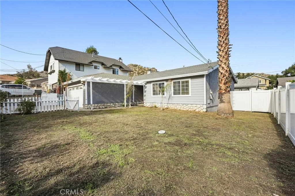Escape the city lights and come home to your own private retreat in the hills of Val Verde. This single-family residence is one of the best priced homes in the Santa Clarita Valley, nestled within the quaint community of Val Verde. Find peace of mind in this quiet enclave surrounded by green hills, adjacent to Castaic, with easy access to the 126 and 5 freeways, and local schools. This home offers a great floor plan with a spacious kitchen and pantry, separate dining area that is open to a nice-sized family room with brick fireplace. Off of the kitchen, you will find an indoor laundry area that fits a full-size washer and dryer. Three bedrooms can be found down the hall, off of the main living area: two secondary bedrooms and a guest bathroom with shower/tub, and a larger Primary bedroom with ensuite bathroom. The interior was recently painted, the common bathroom was updated approximately six months ago,new laminate flooring and a new septic system was installed about a year ago. Windows throughout the house allow for natural light to flow through the home. There is a glass slider off of the dining room, leading to a covered, concrete patio and backyard where you can enjoy a summer evening outside, have a morning coffee, or tend to a home-grown garden. The entire property is fenced, with a lovely front yard, beautiful rose bushes and newly planted palms. The two-car garage and driveway allow for ample parking, including recreational vehicles. The community of Val Verde offers a recreation center with pool and a locally owned corner store.