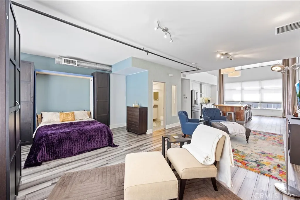 This impressive loft invites you to enjoy a setting that balances comfort, creativity, and convenience. With generous interiors and a layout suited for many uses, it sets the stage for inspired city living. The live|work Santiago Loft offers an amazing living space and the opportunity for business space too! Nestled in the heart of Santa Anas thriving arts and culinary scene, dining & shopping, near the 5, the 55 & the 22 Freeway, this exceptional property offers unmatched potential for both. The first floor offers a half bathroom and enough office space for 4 to 6 desks. Use this first floor space as a workshop or gallery, a gym, a pop up store front, a bedroom, an office, a crafting room or a lounge area - there are so many uses for this space! When the roll up door is open, the space is nice and cool and comfortable to work in. Pilates or yoga sessions would be amazing in this space - lots of potential for any type of usage. The side by side 2 car garage offers upper storage racks and direct access to the loft. On the 2nd floor, you find the beautiful open concept kitchen with Cambria countertops which offer a lifetime warranty! Check out the gorgeous kitchen island! The soaring ceiling opens to the 3rd floor and is really dramatic and sure to wow all your guests. The living room/sitting area/alternate bedroom area/full bathroom are also on the 2nd floor. The master bedroom has an open concept and lofty feel to it and is on the 3rd floor complete with walk-in closet and ensuite bathroom. Interior laundry closet is located on the 3rd floor. You are going to love this live