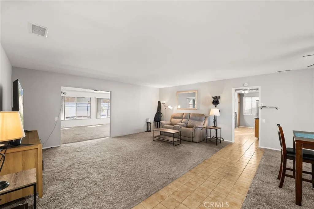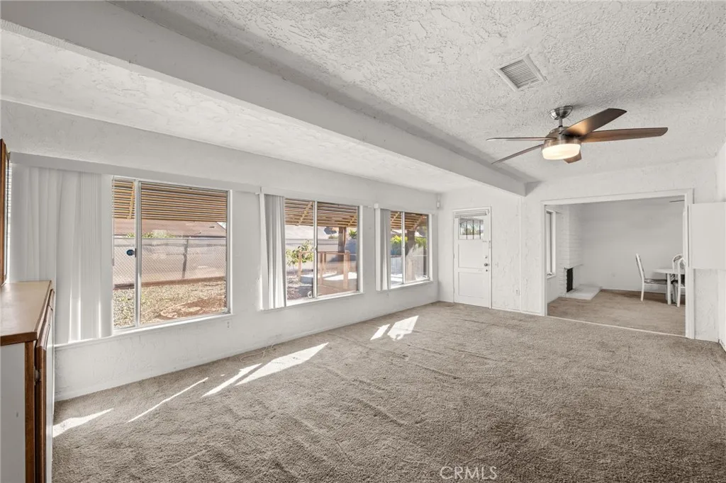 Recently upgraded from top to bottom, this lovely 55+ Sun City single-story home features two newly remodeled bathrooms, a new roof, new HVAC system with new ductwork, a whole-house fan, stainless steel ceiling fans, and new granite countertops paired with new stainless steel kitchen appliances including microwave, oven/electric range, 5-burner cooktop, and dishwasher. Additional improvements include a new wooden deck with lighted gazebo, new TUFF storage shed, newer washer and dryer, new water heater, and newly planted fruit treesorange, lime, fig, and pomegranate. Charming curb appeal welcomes you with a drought-tolerant front yard accented by colorful rock landscaping and resilient plantings, plus a cozy front porch. Step through the protective metal dual-screen security door into a tiled entry leading to a spacious carpeted family room and dining area just off the kitchen. The fireplace dining space flows into an open, efficiently designed kitchen featuring granite countertops, dual stainless steel sink, ample cabinetry, and a cozy seating area that opens to the sunroom with built-in bar and storage cabinetry. The hallway off the kitchen leads to the laundry room with newer washer and dryer and direct access to the 2-car garage, which offers remote entry, abundant built-in long storage cupboards, and a convenient workbench area. The bright sunroom, complete with a new ceiling fan and bar area, adds valuable living space and opens to the attached patio, backyard deck, gazebo, and TUFF shed. Both the kitchen and sunroom feature plentiful windows with shade awnings overloo