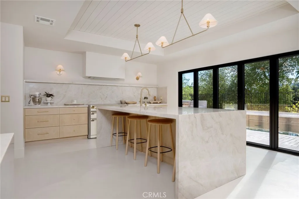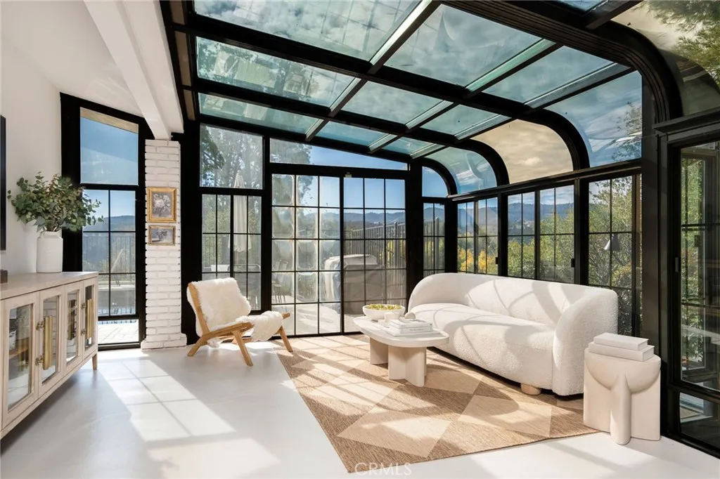 Experience Hollywood Hills vibesright here in Santa Clarita! This privately gated, 4,047 sq ft showpiece blends unmatched privacy, sweeping views, and a fully reimagined Mediterranean-inspired interior that feels like youre on vacation every day. Sleek, minimalistic, and undeniably sexy, this home elevates modern California living at every turn. Thoughtfully expanded to include two sun-drenched sunrooms and a custom theater/bonus space (formerly the 2-car garage), the home offers a seamless mix of resort-level style and functionality. Accordion-style glass walls open wide to create true indooroutdoor flow, letting the views and natural light take center stage. The designer kitchen is a statement of its own with Taj Mahal quartzite countertops, warm tones, and high-end integrated appliances that blend perfectly into the homes minimalistic aesthetic. Featuring 5 bedrooms and 3 bathrooms, the layout includes 2 bedrooms and 1 bath downstairsideal for guests or multigenerational livingand 3 bedrooms, 2 bathrooms, plus a chic office/nursery upstairs. The primary suite is a true sanctuary, offering a spacious retreat area, a private built-in sauna, a three-headed rain shower, and an absolutely stunning dressing roomcrafted to feel like a boutique-level experience. Designed for the eco-minded luxury buyer, the property is fully electric, powered by a massive solar system paired with Tesla backup batteries for energy independence and peace of mind. Outside, youll feel worlds awayperched in total privacy with views reminiscent of the Hollywood Hills. Inside, the Mediterranean-inspire