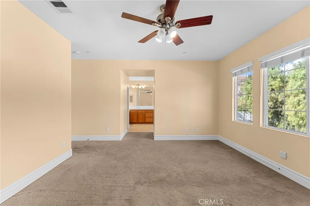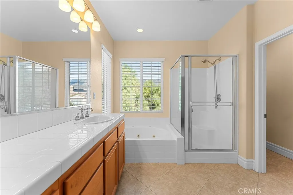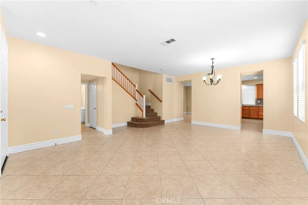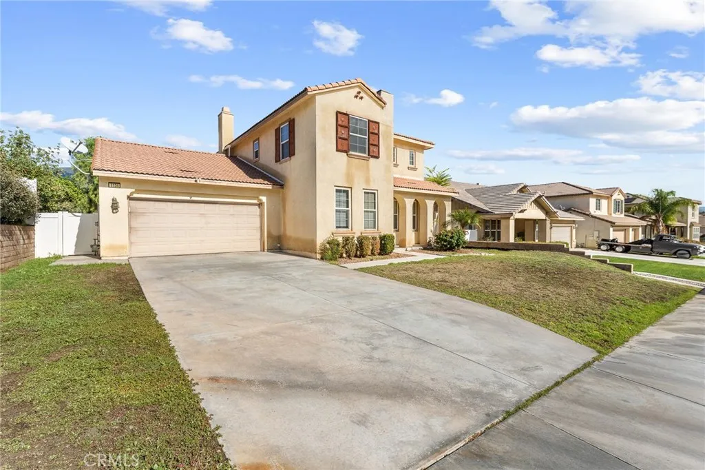Set against a mountain backdrop in the Shandin Hills neighborhood, this two-story home offers an open-concept layout with generous living spaces. The flexible floor plan provides five bedrooms and three baths, including a main-level bedroom and bath ideal for guests or a dedicated home office. At the heart of the home, a large kitchen with extensive cabinetry, granite counters, full backsplash, and an oversized island opens to the tile-floored family room with fireplace and backyard access. Upstairs, the light-filled primary suite captures hillside views and features an en suite with dual sinks, soaking tub, separate shower, and walk-in closet, with secondary bedrooms near a full bath and a dedicated laundry room. Outdoors, a covered patio, spacious fenced yard, and three-car attached garage are complemented by a location near California State University, San Bernardino, shopping and dining along University Parkway and Kendall Drive, Shandin Hills Golf Club, and convenient access to the 215 and 210 freeways.