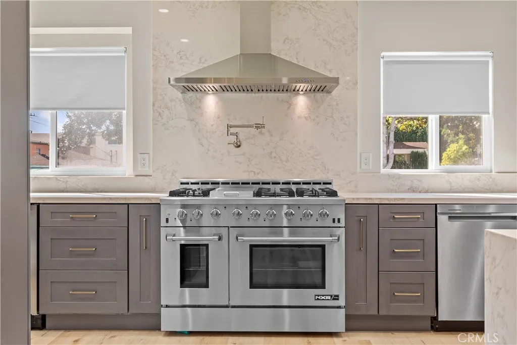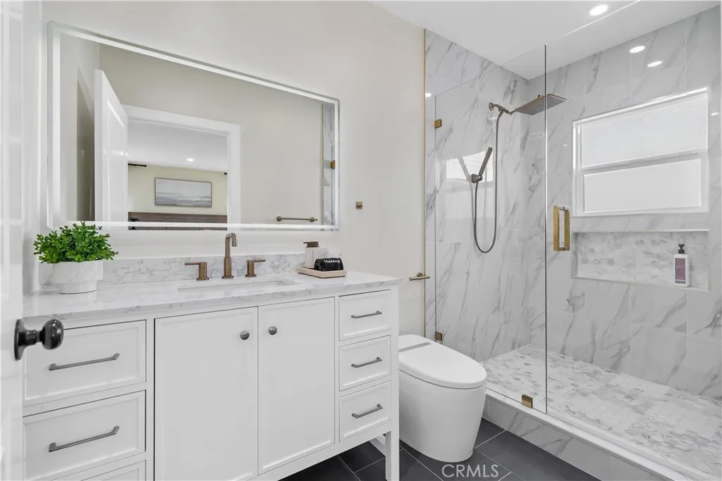 Welcome to this stunning, fully remodeled homecompleted just last year and perfectly situated on the border of Santa Monica. Built with high-quality insulated materials for exceptional quiet and comfort, this 3-bedroom, 3-FULL bath residence features two elegant master suites and offers 1,804 sq. ft. of thoughtfully updated living space on a generous 6,250 sq. ft. corner lot. The bright living room showcases soaring ceilings and a grand fireplace, seamlessly connecting to a formal dining area and a modern chefs kitchen appointed with custom cabinetry, quartz countertops, and a 48" Pro Series range. Both master bathrooms are designed with premium finishes, smart toilets, Bluetooth speakers, and LED mirrors. Additional upgrades include a new central HVAC system with Nest control. Outside, the tranquil backyard features lush landscaping, a welcoming patio, and automatic sprinklers. The detached 2-car garage and spacious lot also offer excellent potential for a large ADU. This home beautifully combines comfort, luxury, and remarkable future value.