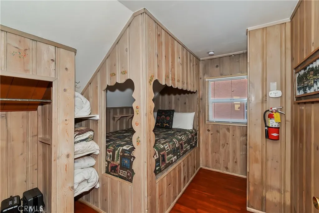 Great location, walking distance to the lake and short drive to the village. This charming A-frame log cabin with wood-burning fireplace, situated on a quiet street and fully furnished will be a perfect vacation home for years to come. The front porch entrance welcomes you to a relaxed, cozy setting with wood floors, living room with chimney, separate dining area, a fully stocked kitchen with stove, fridge, pots and pans. Upstairs you can find 2 bedrooms and a loft bedroom. The guest bedroom and loft has custom built in wooden bed frames giving this cabin a whimsical, storybook feel with a clever use of space. The separate master bedroom with peek-a-boo windows offers privacy and a queen bed. Large outdoor deck is great for summer BBQ's, and entertaining or Relax in the Jacuzzi. Back entrance mudroom is ideal after a long day at the slopes and provides additional storage. This cabin has been a vacation rental for many years and is fully furnished and equipped. Brand new driveway with space for 2 cars.