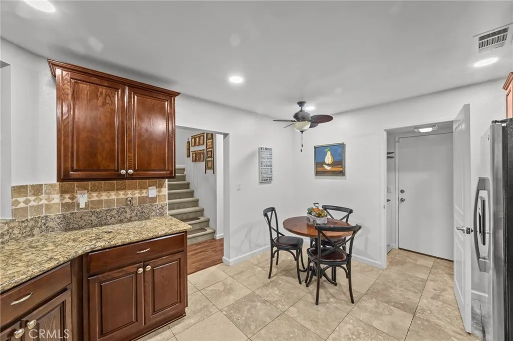 Step inside and feel the warm and inviting flow of this lovely home. The bright living room has wood flooring, a cozy fireplace, and shuttered sliding doors that open to a ground-level patio with pleasant outdoor views. Enjoy a warm cup of tea while watching neighbors stroll by. The dining space leads to an updated kitchen with custom tile floors, granite countertops, and stainless steel sink, dishwasher, refrigerator, and stove. Cooking while talking with family or guests is simple here. Natural light fills the space and adds a cheerful feel. A skylight at the stairs brightens the upper level. The three spacious bedrooms offer comfort and privacy. The master bedroom features a balcony, updated bathroom, and roomy walk-in closet. Carpet stays upstairs for a soft feel. All bathrooms are updated. Downstairs, the laundry sits next to the door leading to the attached two-car garage, which includes an EV charger, epoxy flooring, and a smart opener you can use from your phone. A Ring doorbell, community pool and jacuzzi, nearby shopping, parks, trails, easy commuting, and award winning schools add to the appeal. This home is turn-key and move-in ready.