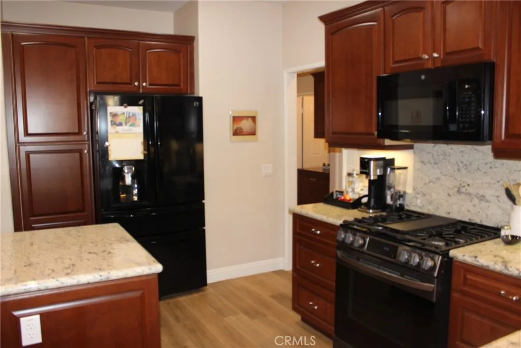 This great 3-bedroom, 2 bath single story home is located near the pool (not too close) and backs and sides to the greenbelt. The condo has been nicely upgraded with vinyl plank flooring throughout, plantation shutters throughout, granite counter tops throughout, fireplace in the living room, and a kitchen with refaced kitchen cabinets, granite covered island, newer gas range & oven, and kitchen nook overlooking the greenbelt. Several rooms have crown molding, an inside laundry room with cabinets and a sink, recessed lighting, and several ceiling fans. The master bedroom is large with two mirrored wardrobes, a vanity with dual sinks & granite, a walk-in shower, and a private toilet closet, and a slider to the rear patio. The rear patio is spacious and private due to being an end unit. Amenities include clubhouse, pools, spa, putting course, tennis, and activities. Easy to show and priced to sell.