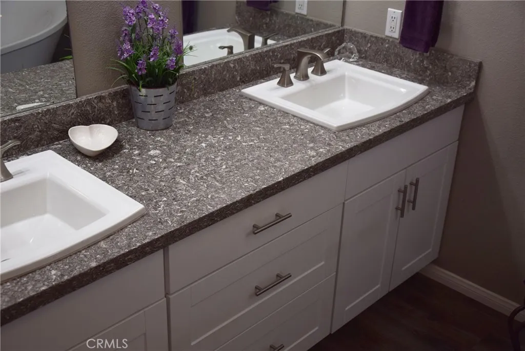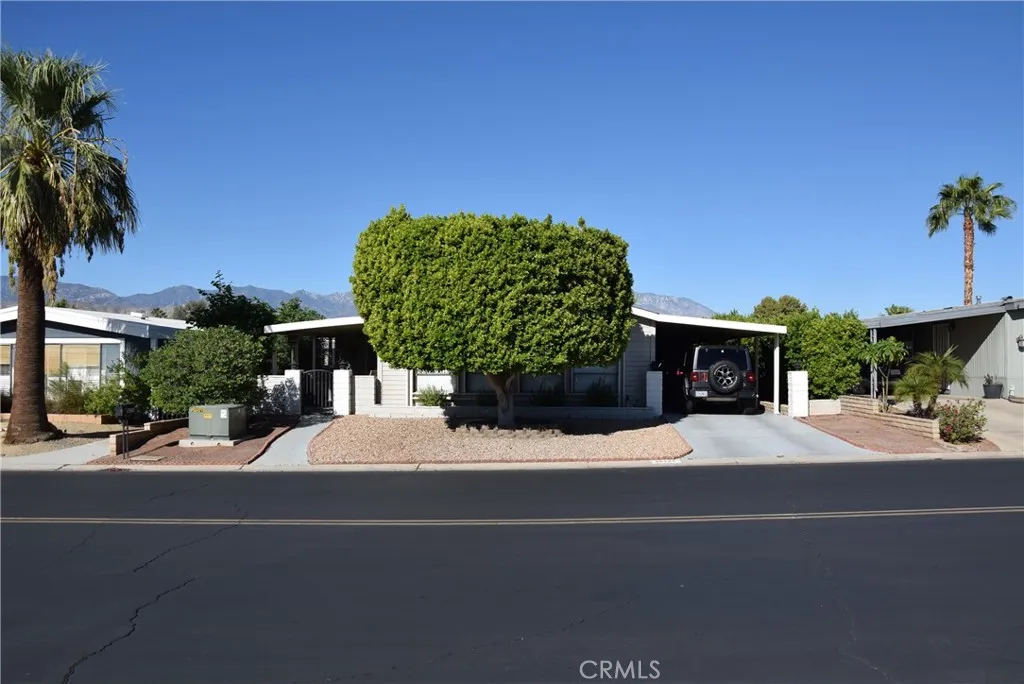 NO rent, NO lease, just pure ownership! AND HIGH VAULTED CEILINGS AS IN NO OTHER! SPACIOUS! This home is located in a 55+ senior community. HOME: Looking for a slice of paradise without breaking the bank? Beautiful Home Completely Renovated with NEW ROOF 2024, Newer Air Conditioner, Drywalled and Newer Plumbing, make this A Must See on your list !!! Large Bedroom with VAULTED ceilings, Bath Custom Soaking Tub, all newer fixtures and a Newer Tiled Shower, The Chefs Kitchen is OPEN and Spacious, GREAT FOR ENTERTAINING and a Cozy Fireplace for Ambiance. INTERIOR: With an open floor plan, this is a great home for entertaining family and friends. The ceilings in the great room are VAULTED with Stylish touches like recessed lighting, newer flooring, revamped bathrooms, and a gorgeous kitchen with like-new appliances make this place feel like a breath of fresh air. Home has been updated and shows very well with a large center island with plenty of drawers for storage and soft close cabinets. HOA AMMENTIES ONLY $400 monthly: Imagine having full cable TV, internet, trash service worth over $200 alone! Plus, unlimited free Golfing (18 hole executive golf course and PRO shop) for all owners! Its like living at a resort, but without the hefty price tag. The community Clubhouse, Restaurant, lounge, 3 pools/spas with one for families fitness center, also has tennis & pickleball courts, bocci ball area, shuffleboard (indoors), billiard, card room, recreation room, bar and banquet room and a library along with more than 30 social clubs making this a desert JEWEL!. SECURITY: 24 hr security