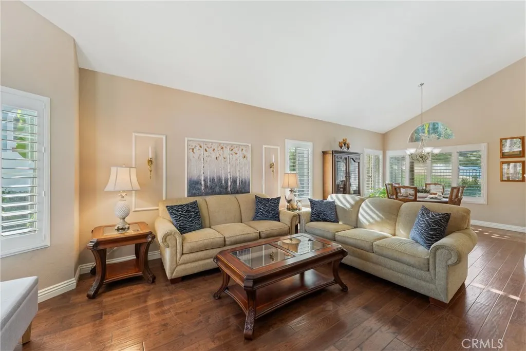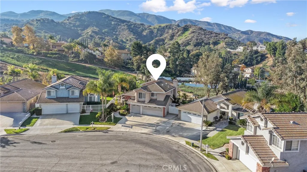 PANORAMIC MOUNTAIN VIEWS | 3-CAR GARAGE | 1st EXIT TO ORANGE COUNTY | CUL-DE-SAC | LOW TAXES | NO HOA | Welcome to this beautifully maintained former model home with its premium view located in the highly desired Sierra Del Oro community, nestled next to Yorba Linda and Anaheim Hills. Step inside to a formal entry and spacious Living Room where you are immediately greeted by soaring cathedral ceilings, beautiful wood flooring and an abundance of natural light. This four-bedroom residence offers exceptional comfort, style, and functionality throughout. The open-concept Family Room is ideal for relaxing or entertaining, featuring an inviting fireplace and seamless flow into the spacious Kitchen. A chefs delight, the Kitchen offers stainless steel appliances, a garden window, breakfast bar seating, ample cabinetry, a coffee bar, breakfast nook, wet bar for entertaining fun, and a generous walk-in pantry, ensuring everything has its place. A separate Dining Room provides additional space for hosting dinner parties and holiday gatherings. Upstairs find gorgeous luxury plank flooring and your Primary Bedroom - a peaceful retreat, featuring an Ensuite Bathroom appointed with a deep soaking tub, separate walk-in shower, dual-sink vanity, and a large walk-in closet. Bedrooms 2 and 3 are well-sized and Bedroom 4 has beautiful built-in floor-to-ceiling display cases - making it flexible for bedroom or a perfect home office! Convenience is enhanced with 2 additional Bathrooms and a separate Laundry Room. Watch sunsets nightly across the mountains while you enjoy your private tropical b