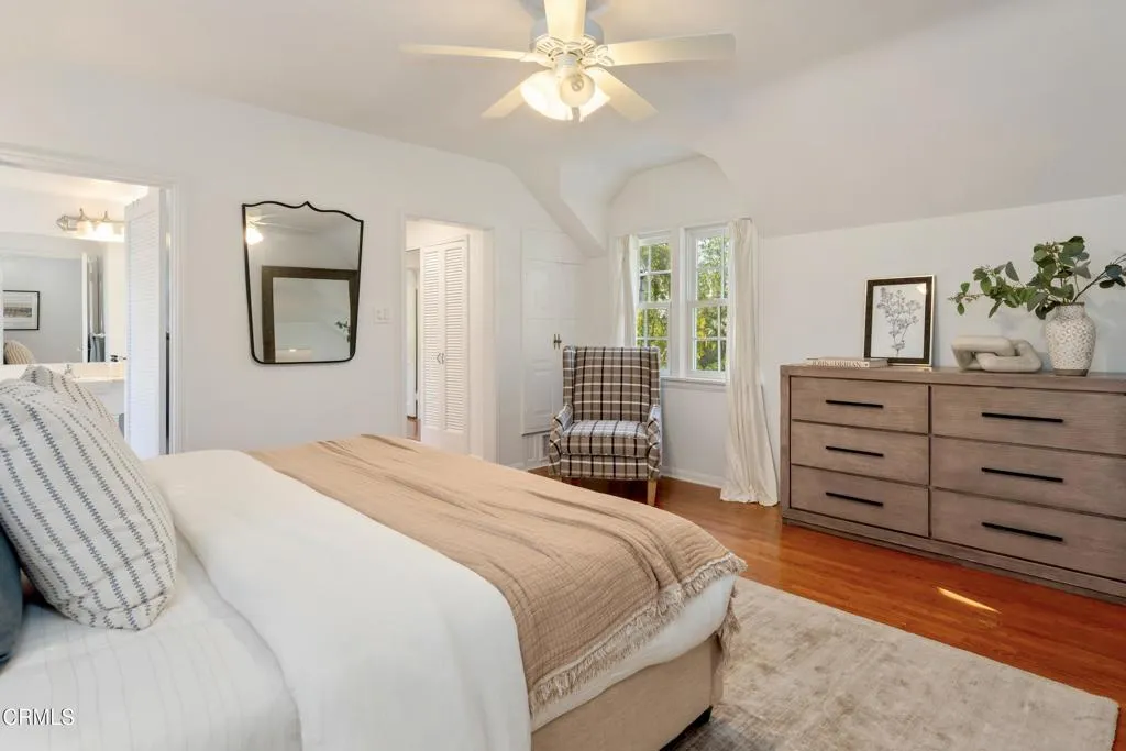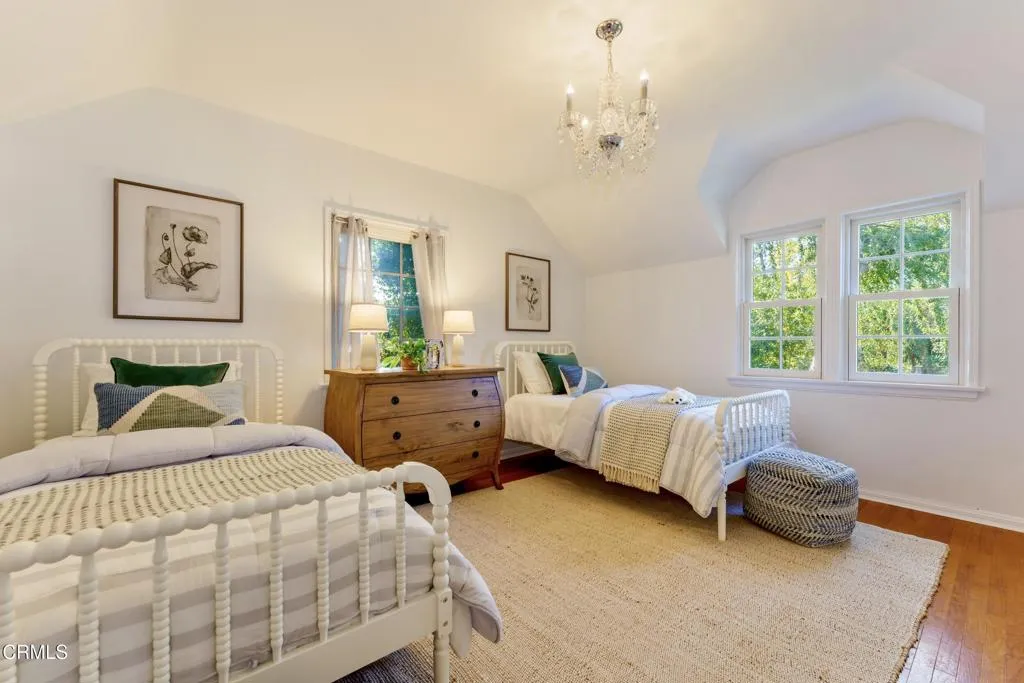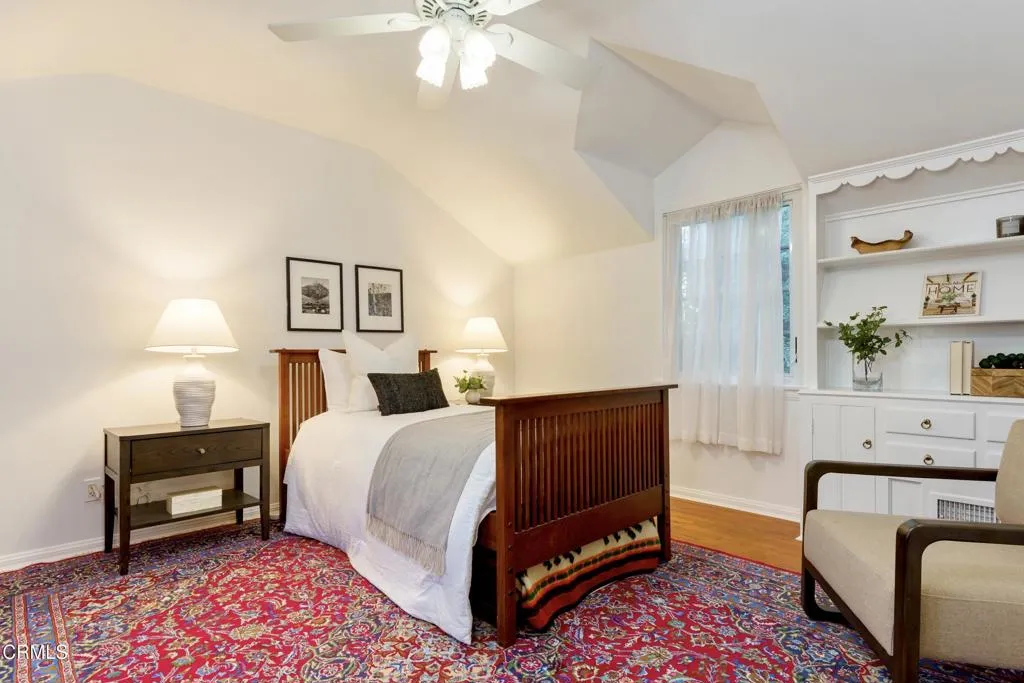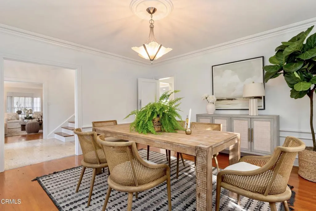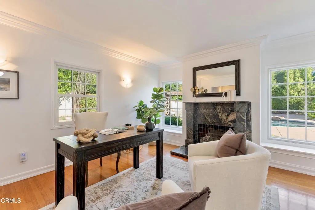 Located across the street from the acclaimed Huntington Library and Botanical Gardens, this classic 1938 Colonial style home is sited on a spacious 0.36 acre lot. The entry, featuring leaded glass sidelights, leads to a spacious living room, complete with a bay window and molding details. The light-filled dining room showcases original wainscoting. A separate den, featuring a fireplace, can be a quiet retreat or home office. The spacious family room is open to the kitchen and overlooks the expansive rear yard, complete with a fabulous pool including a waterfall feature and slide, and a built-in spa. Completing the main floor is a bedroom, a 3/4 bathroom, a laundry room, and a 371 SF multi-purpose bonus room that is perfect as a teen hangout, gym or music room. This classic floor plan features three bedrooms upstairs, including a gracious primary suite, all of which boast ample closet space and built-in shelving, as well as two bathrooms upstairs. Additional features include dual-pane Anderson windows, dual zoned HVAC, and lovely hardwood floors throughout. The newer detached 3-car garage has a pull-down access to a large attic storage area. Conveniently located near the San Marino schools, shopping, and just steps from the Huntington Library. Here's your opportunity to make your mark in San Marino!