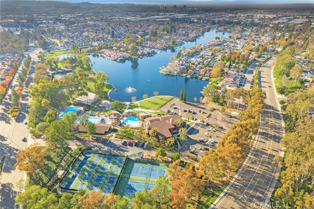 Located on a private interior setting between two small cul-de-sacs, this beautifully updated townhome feels like a single-family home. Scenic lake views welcome you as you enter the community. The lush front lawn, landscape and walkway to the entrance create an inviting first impression. The main level features new "white oak" luxury vinyl plank (LVP) flooring, upgraded baseboards, and fresh paint throughout. The spacious living room showcases a large picture window, new ceiling fan, and recessed lighting. Kitchen is appointed with white shaker cabinetry, new LED lightingand updated fixtures. Kitchen and dining room open to the large private patio with brick pavers and patio cover, a storage shed, and newer vinyl gate. Upstairs, the primary suite includes a walk-in closet, dual pane sliding door to the private balcony, walk in closet and a bath with new vanity and mirror. The three additional secondary bedrooms are generously sized and share a remodeled bath. The laundry room adds everyday convenience along with an abundance of cabinetry, shelves and storage. Additional upgrades include dual-pane Milgard windows, new water heater, new lighting, nearly new HVAC system, and a PEX REPIPE for peace of mind. Residents enjoy full access to the Lake Forest Sun & Sail Club with multiple swimming pools, spa, fitness center with lake views, lighted tennis and pickleball courts, sand-volleyball, basketball half-court, playground, lakeside amphitheater, banquet room, lounge, BBQ and picnic areas, and seasonal snack-bar service. Conveniently located just minutes from Irvine, the Irvine