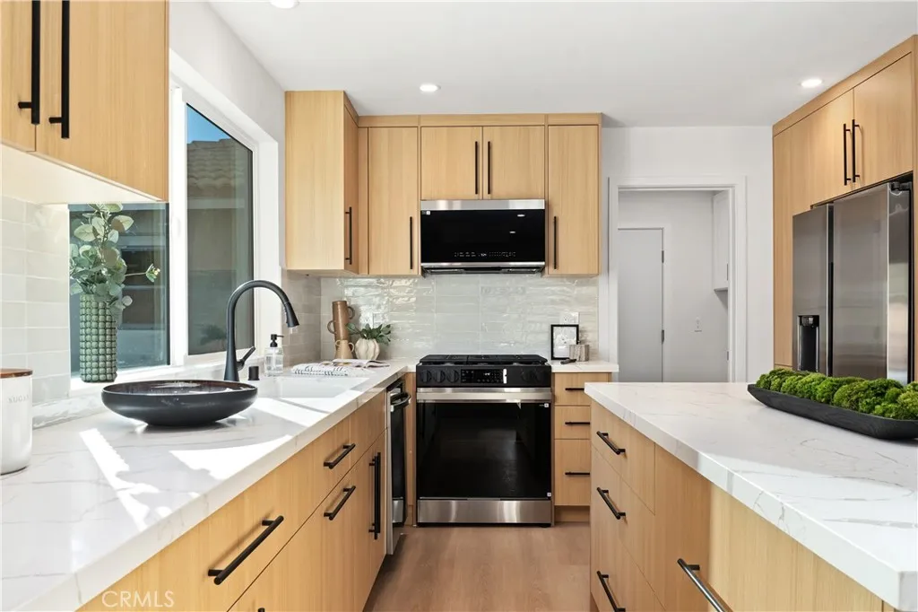 Stunning Golden West College Estates Home - Fully Updated 3 Car Garage Home on a Huge Corner Lot with built-in Pool & ADU Potential. Step inside to an inviting, 2 fireplaces, modern interior featuring new 8mm luxury vinyl flooring, recessed lighting, Smoothed ceilings fresh interior and exterior paint, and new interior and entry doors throughout. The remodeled kitchen shines with contemporary finishes, while all three bathrooms have been tastefully updated to todays standards. Major system upgrades provide peace of mind for years to come, including a new 200-amp electrical panel, new furnace and A/C with brand-new ducting, new PEX plumbing, new hot water heater, attic was cleaned/vacuumed - now has new R-30 insulation, updated outlets and switches throughout. The exterior offers exceptional function and curb appeal, a three-car garage with epoxy floors, new garage door openers, and plenty of space for entertaining. With its extensive list of upgrades, prime corner location...Close proximity to Golden West College, Bella Terra Shopping & approx. 4.5 Miles to the beach..